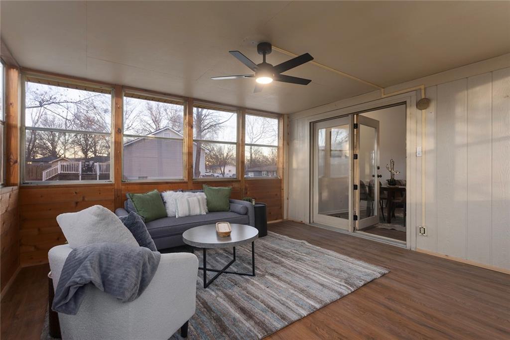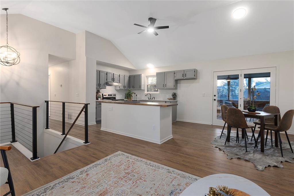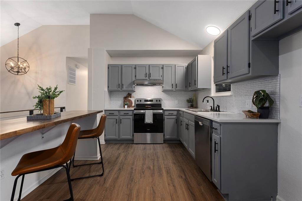 Welcome home to this beautifully updated property featuring a fully remodeled floor plan with a fresh modern feel throughout. From the moment you step inside, you’ll love the bright open spaces, sleek finishes, and thoughtful updates that make this home truly move-in ready. The kitchen is a showstopper with painted cabinets, a stylish tiled backsplash, and a butcher-block center island that offers extra counter space and doubles as seating—perfect for everyday meals or entertaining guests. The primary bedroom features its own private ensuite bathroom complete with a walk-in shower for convenience and comfort. Head downstairs to the second spacious family room, ideal for movie nights or hosting gatherings. Don’t miss the fun corner bar area with infinity lights—your new favorite spot for game nights or weekend hangouts! One of the best spaces in the home is the fully enclosed sunroom—usable year-round with plenty of room for a dining setup or cozy couches to relax with your morning coffee or unwind in the evenings. Step outside to the huge fenced backyard, offering endless possibilities! There’s a large patio area great for outdoor seating or BBQs, along with two storage sheds for tools, toys, and equipment.