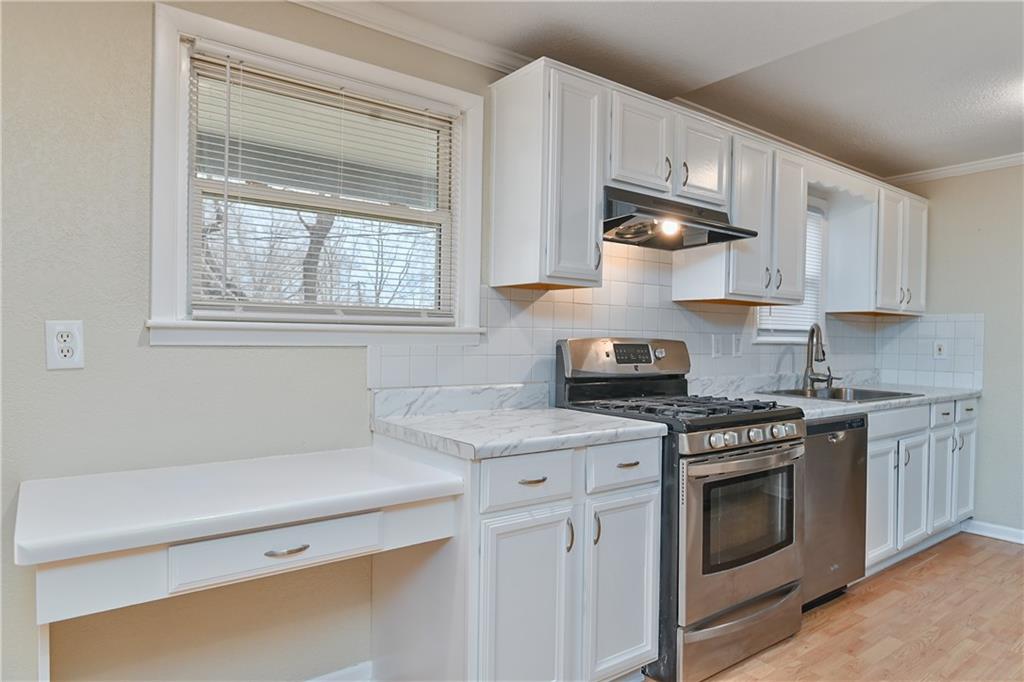 Fully remodeled home on a rare ½-acre lot! This 3 bedroom, 2 bathroom property features a finished basement offering flexible living space for a second living area, guest suite, or home office. Updated kitchen with white cabinetry, stainless steel appliances, modern finishes, and fresh flooring throughout. Spacious yard with mature trees—perfect for entertaining or future expansion. Move-in ready with easy access to shopping, dining, and highways.
