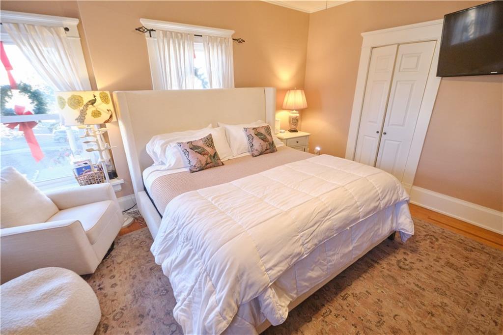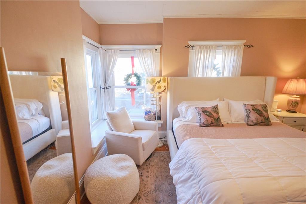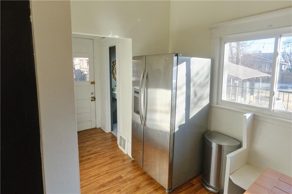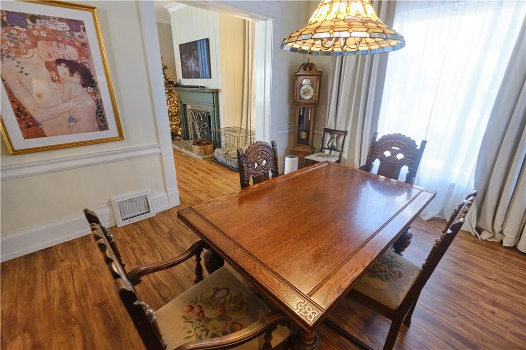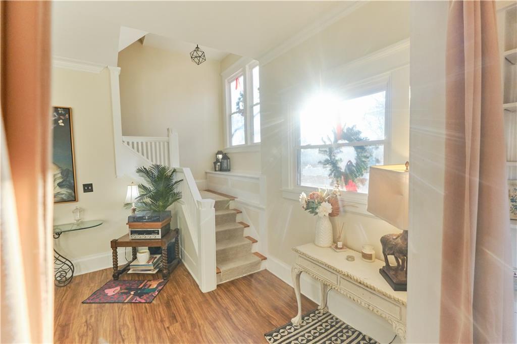 Take a look at this stunning 4-bedroom, 2.5-bath Craftsman-style home nestled in the historic Southwest Pittsburg neighborhood. This home features tall ceilings, beautiful original wood floors, solid wood doors, and crown molding. It also boasts Leaded and beveled glass doors and windows. The custom kitchen offers ample storage and prep space, along with a spacious island and breakfast area. The large, welcoming covered front porch leads into the foyer and expansive living room, where a gas log fireplace serves as the focal point. A beautiful open staircase leads to the upstairs bedrooms. There are four spacious bedrooms, with the primary bedroom attached to the fourth bedroom. This setup is perfect for a nursery or home office and includes an updated private bath. The third bedroom leads to the large upstairs sunroom, which is flanked by windows on three sides. The hall bath has been tastefully updated with modern fixtures and added storage. There’s also a full unfinished basement with a dry basement drainage system installed. Step outside onto the new composite deck with metal railing. The large privacy-fenced yard features a private flagstone patio, a large attached carport, and an unattached garage. Make your appointment soon!