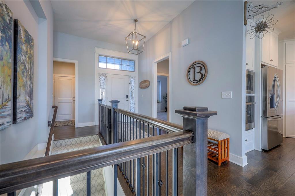 Why wait for new construction! This pristine home has a recently added screened-in patio and interior blinds. The Prescott plan by Crestwood Custom Homes boasts 10' ceilings in the entry & great room and so much natural light from the great room wall of windows. Hardwood floors throughout the entry, great room, kitchen and breakfast room. The kitchen has large island with quartz counter tops, custom cabinets, gas cooktop, built in oven & microwave, and a walk-in pantry. The spacious great room offers floor to ceiling stone fireplace. The primary bedroom/bath feature a large walk-in closet, double vanity, an oversized zero entry walk-in shower and a free standing tub. Easy access to the laundry room directly from the master closet. Additional bedroom and full bath on the main floor. Finished lower level is the perfect entertaining space with large family room, walk up bar with mini refrigerator, sink, and granite/quartz countertop. There are also 2 additional bedrooms - one with double doors (great for exercise room or office) and an additional full bath in the lower level. Enjoy your morning coffee relaxing on the covered screened-in patio. Your quarterly HOA dues cover yard work, snow removal, exterior painting, winterization of irrigation, and common ground maintenance. The home is close to shopping, restaurants and highway access. Don't miss the opportunity to make this impeccably maintained house your next home!