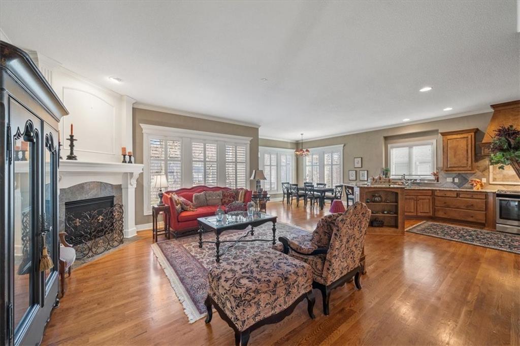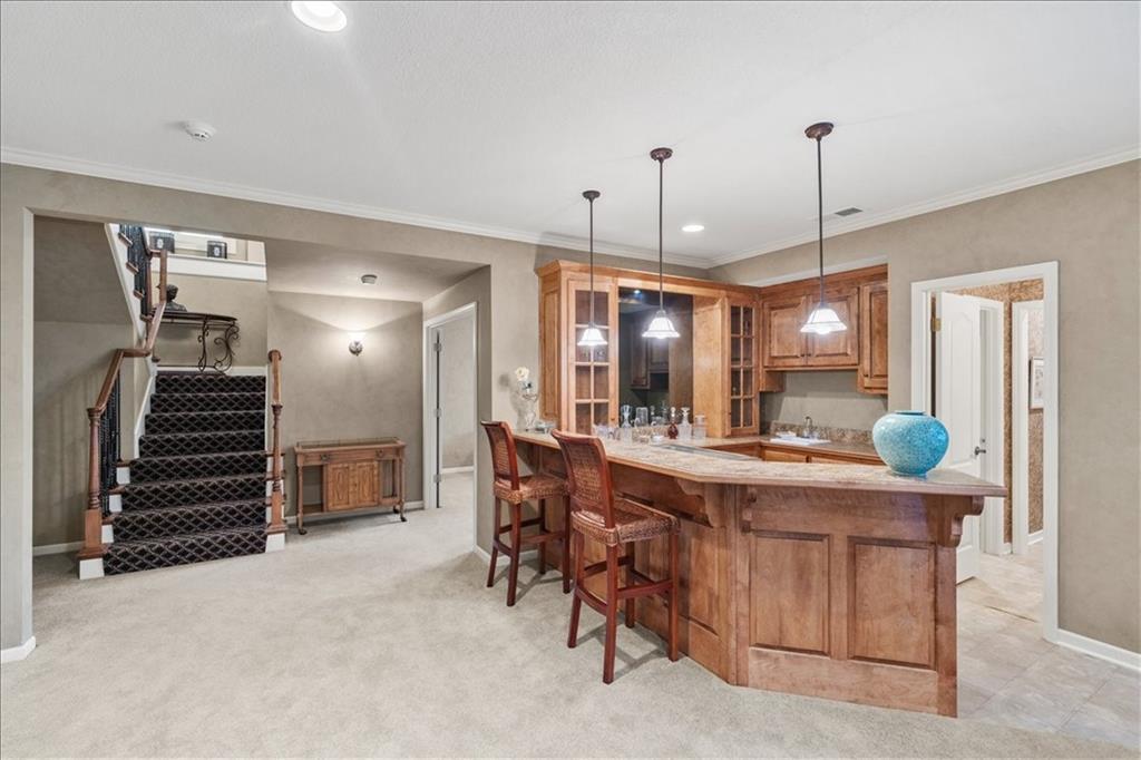 Welcome to an exceptional turn-key home in The Villas of Chapel Green, offering low-maintenance luxury living in one of Leawood’s most sought-after communities. This beautifully maintained home features 3 bedrooms, 3.5 bathrooms, and a 2-car garage, all thoughtfully designed for comfort and everyday living. Step inside to discover soaring ceilings and rich hardwood floors throughout much of the main living areas and kitchen, creating a warm and inviting atmosphere. The spacious kitchen opens to the heart of the home and flows seamlessly into the formal dining and great room spaces, perfect for gatherings or relaxed evenings at home. The main level features two generous bedrooms, including a primary suite with an en-suite bath and ample closet space. A large laundry room on the main floor adds to the everyday convenience. Downstairs, the finished lower level expands your living space with a large living/recreation room and a beautiful built-in bar, ideal for entertaining guests or hosting game nights. A private bedroom and full bath at this level offer a great option for family or guests. There’s also significant unfinished storage space that could easily be transformed into an additional bedroom, hobby room, or home gym. Community provided lawn maintenance and snow removal make living in The Villas of Chapel Green easy, while a newer roof and well-maintained/updated mechanicals and appliances make the house a worry-free place to call home! Don’t miss this rare opportunity to own a move-in ready home in one of Leawood’s premier communities — a perfect blend of style, space, and maintenance-free living.