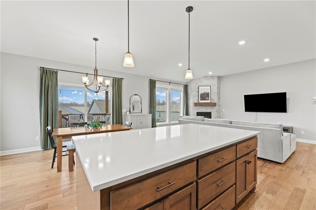 HAPPY NEW HOME! Pride of Ownership Shines in this Stylish Ranch/Reverse 1.5 Story Featuring a Prized Open Layout w/THREE Main Level Bedrooms + Fab Finished WALK-OUT Lower Level w/4th Br, 3rd Ba & Generous Storage, Exercise, Hobby Areas! Enjoy Entertaining Inside and Out w/Multiple Living/Lounge/Dining Spaces! Lovely Kitchen w/Walk-In Pantry + HUGE Dining Isle * King Size Primary Suite w/Double Vanity, Water Closet + Spacious Shower * Walk-In Closets in All Bedrooms * BIG Fenced Backyard * Lawn Sprinkler System * Covered Deck w/Low Maintenance Composite Flooring * 3 Car Garage * Conveniently Located Near Shopping, Dining, Parks & Lakes * Lee's Summit Schools * Popular Neighborhood w/Amazing Amenities Including Trails, Play Area, 2 Swimming Pools + 30 Acre Stocked Lake for Fishing and Fun! CUTE, CLEAN & MOVE IN READY!