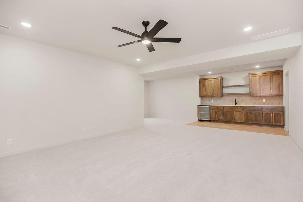 The Woodland by Elevate Design + Build is a reverse 1.5-story 5 bedroom home offering a modern exterior, a smart main-level layout, and spacious lower-level living on a large almost 13,000 sq.ft. lot. 8' tall interior doors on the main level, pocket office off kitchen, sleek electric fireplace. The main floor features the primary suite plus a second bedroom that can serve as an office or flex space, providing versatility for today’s lifestyle needs. The great room connects seamlessly to the kitchen and dining area, all highlighted by natural light throughout. A covered deck sits just off the dining area, ideal for outdoor dining or quiet relaxation. The primary suite offers a peaceful retreat with a spacious layout and access to a beautifully appointed bathroom. The lower level extends the living area with a large family room with wet bar plus three additional bedrooms, offering privacy for guests or added functional space. Located in Stonebridge Park, residents enjoy access to four zero-entry pools, two clubhouses with fitness equipment, sport courts, playgrounds, and walking trails. Nearby amenities include Heritage Park (~0.3 mi) with lake access, dog park, athletic fields, disc golf course, and an 18-hole golf course. Convenient to Prairie Creek Elementary (~0.6 mi), Woodland Spring Middle (~1.0 mi), and Spring Hill High (~5.5 mi). Everyday essentials are close by with local coffee shops (~1–1.2 mi), Natural Grocers (~4.2 mi), and Price Chopper (~1.5 mi). Early spring completion! Taxes, square footage, and room dimensions are estimated – Buyer or Buyer Agent to verify.