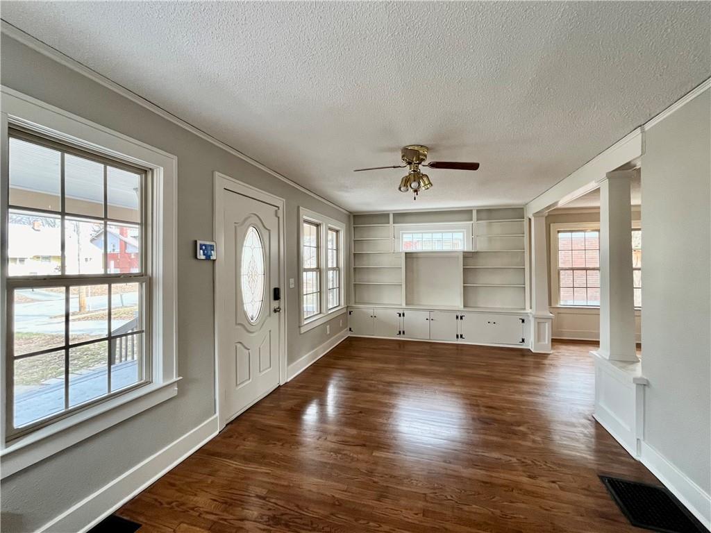 Spacious and inviting 5-bedroom,3-bathroom home. Master bedroom with carpet, walk in closet with on suite bathroom. Hardwood floors in the living room, dining room, 2 first floor bedrooms and 2 second floor bedrooms. The living room offers custom built-ins and flows seamlessly into the formal dining room, perfect for gatherings and entertaining. Kitchen with newer cabinets and countertop. Fresh paint throughout. Enjoy outdoor living from the spacious front porch or the covered deck overlooking the fenced backyard. The walkup basement adds versatility and additional living or storage space. This well-maintained home offers classic charm and exceptional living space. The home is in tax abatement half of the taxes for 2026 through 2029. SELLERS TO REVIEW ALL OFFERS MONDAY 1/19/2026