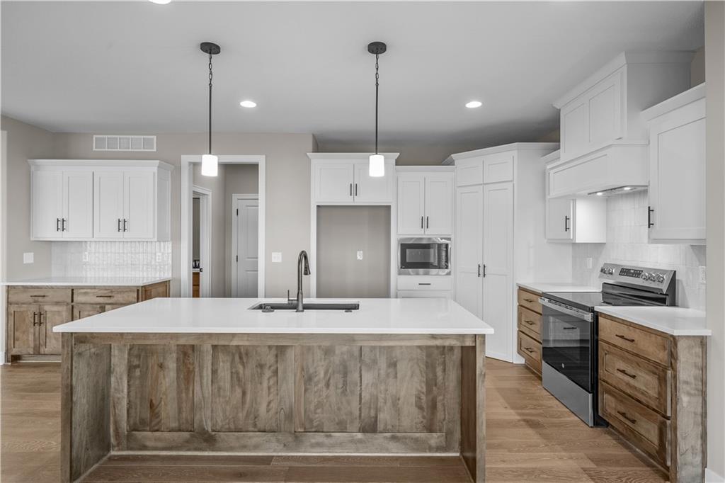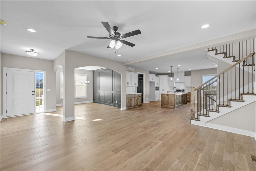 Estates Former Model now Available. Kellen II plan with covered patio and 3-car garage. Standard Features include an in-ground sprinkler system, a freestanding tub, an expanded pantry, and an oversized island with a breakfast bar. A linear, heat-producing, electric fireplace with custom trim work. Upgrades include 9-foot foundation walls, Hardwood floors in the great room and dining room, and French doors on the Flex room/office/bedroom. Trim Accent Feature Wall in Dining Room and Master Bedroom. Extensive trim in Master Closet, including upgraded bench stack and 3rd row of hanging storage. Folding and Linen Shelves in Laundry Room. Matte Black Faucets and Features. Includes 2-inch Faux Wood Blinds and Garage door openers with a keypad. Kitchen prep pantry upgrade also included. Front porch with open gable faux beam upgrade. Taxes and square footage are estimated.