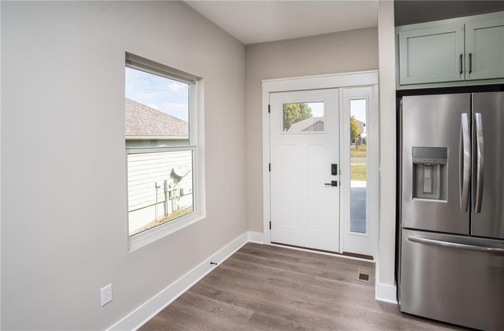 Price Reduction and 5 Year Tax Rebate!! New construction townhome with main-level primary bedroom including double closets. The stylish kitchen is designed to be highly functional, with quartz countertops, a gas range, soft-close cabinets and drawers, and a large pantry. Storage is plentiful throughout this home. The main level bath offers a spacious, beautiful onyx shower. Downstairs, three additional bedrooms share a full bath. There's also extra living space and a spacious laundry room in the walkout basement. One of the downstairs bedrooms opens directly to a patio, providing a private spot to relax or enjoy the outdoors. LVP flooring runs through the main living areas, giving the home a modern look and durability. The neighborhood is just north of town, offering a quieter setting while keeping Highway 56, Gardner, and Lawrence within easy reach. Homeowners can also take advantage of a 5-year tax rebate by submitting proof of tax payment with the city each year to qualify for the rebate.