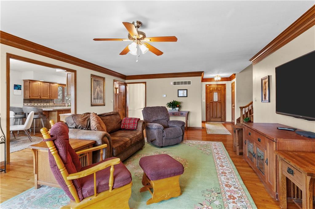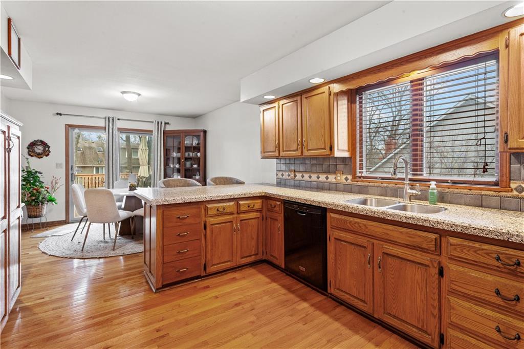This spacious, all-brick home in the sought-after Weatherstone West neighborhood is well suited for both entertaining and everyday living. The generous main-level living spaces easily accommodate larger gatherings while still feeling comfortable for smaller get-togethers. The kitchen features granite countertops, excellent cabinet storage, and an abundance of pantry space. Natural light pours in through large windows and a sliding door off the eat-in area that opens to a huge deck—ideal for outdoor dining or relaxing evenings. A separate dining room off the kitchen adds even more flexibility for hosting. The full sized laundry room is off the kitchen, providing additional cabinet storage and built-in ironing board. The large living room includes a gas fireplace and floor-to-ceiling windows that overlook the level, fenced backyard. Throughout the main level, you’ll notice quality woodwork, crown molding, and hardwood floors that add warmth and character. Upstairs, the primary bedroom offers a true retreat with plenty of room for full-size furniture, plus a bonus nook perfect for a reading corner or sitting area. The ensuite bath includes double vanities, a newly remodeled, spacious walk-in shower, and a skylight that brings in great natural light. An additional bedroom and full bathroom complete this level. The walk-out lower level provides another generous living area with a second gas fireplace and access to the patio through a newer sliding door. The additional bedroom on this level could also be converted back into two bedrooms if desired, and there is another full bathroom nearby. The oversized garage is a standout feature—nearly 28' deep and 38' wide—offering ample space for a full-size truck, boat, workshop, or extra storage. Over the past 6 years, the owners have made thoughtful updates including new upstairs carpet, backyard fencing, refinished driveway walls, a remodeled primary shower, Champion windows & rear slider, and a replaced & sealed deck.