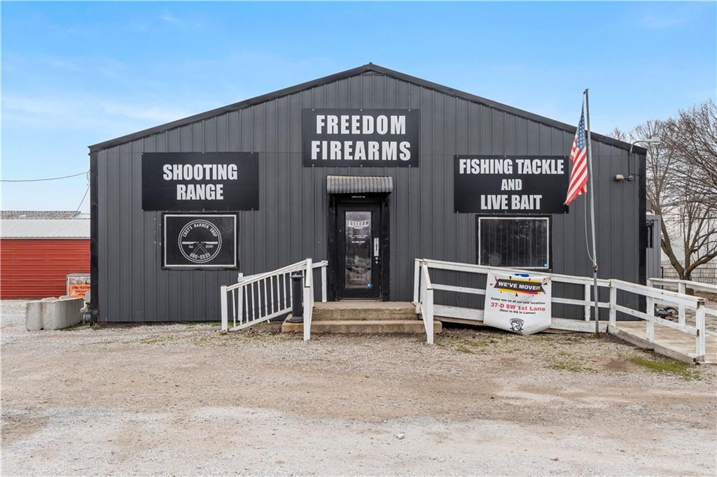 Located on a main thoroughfare in Lamar, Missouri, this versatile commercial property offers strong visibility, on-site parking, and flexible use potential. Situated on approximately 0.87 acres, the property includes a 3,000 square foot main building with steel siding and a showroom-style open layout that is move-in ready. The primary space is currently vacant and features a showroom area along with three private offices positioned toward the back of the building, allowing for a variety of business, retail, service, or office configurations. A smaller portion of the main building is leased to a well-established local barber on a month-to-month basis, providing built-in income with flexibility for future use. The property has demonstrated consistent occupancy over time, supporting its suitability for ongoing commercial use. Also included is a fully insulated 22 x 36 metal building constructed of 12-gauge steel and equipped with two 9 x 8 roll-up doors, offering additional space suitable for storage, service operations, or light industrial use. With on-site parking, supplemental outbuilding, partial lease income, and a highly visible location, this property presents a strong opportunity for an owner-occupant, investor, or a combination of both. An attached, climate-controlled indoor shooting range is not included in the sale but may be available for purchase at an additional cost.