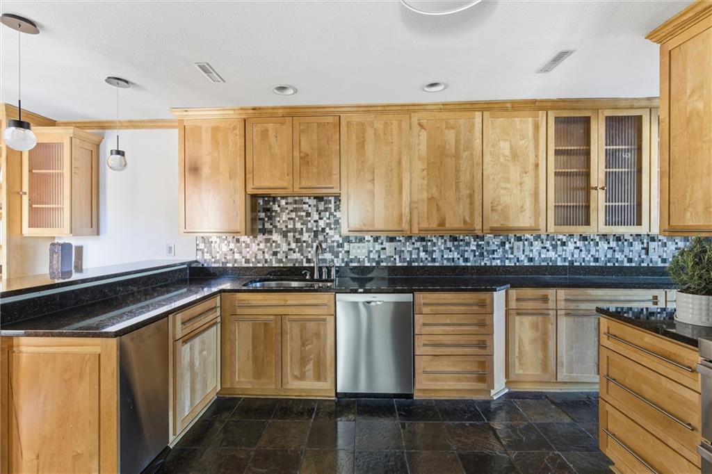 his beautiful home offers generous living spaces, soaring ceilings, and thoughtful design throughout. The large kitchen features abundant cabinets and storage—perfect for meal prep and clean-up—and connects to the first floor den. The vaulted living room centers around a cozy gas fireplace, with direct access to an expanded private balcony for outdoor relaxation and entertaining. Upstairs, you’ll find a spacious primary suite with an en-suite bath and walk-in closet, plus a second bedroom—also with its own en-suite bath and walk-in. The basement if finished with a large rec room for additional living space. Enjoy the ease of a private 2-car garage with epoxied floor that opens directly into the kitchen. A rare find with great flow and function in a sought-after location!