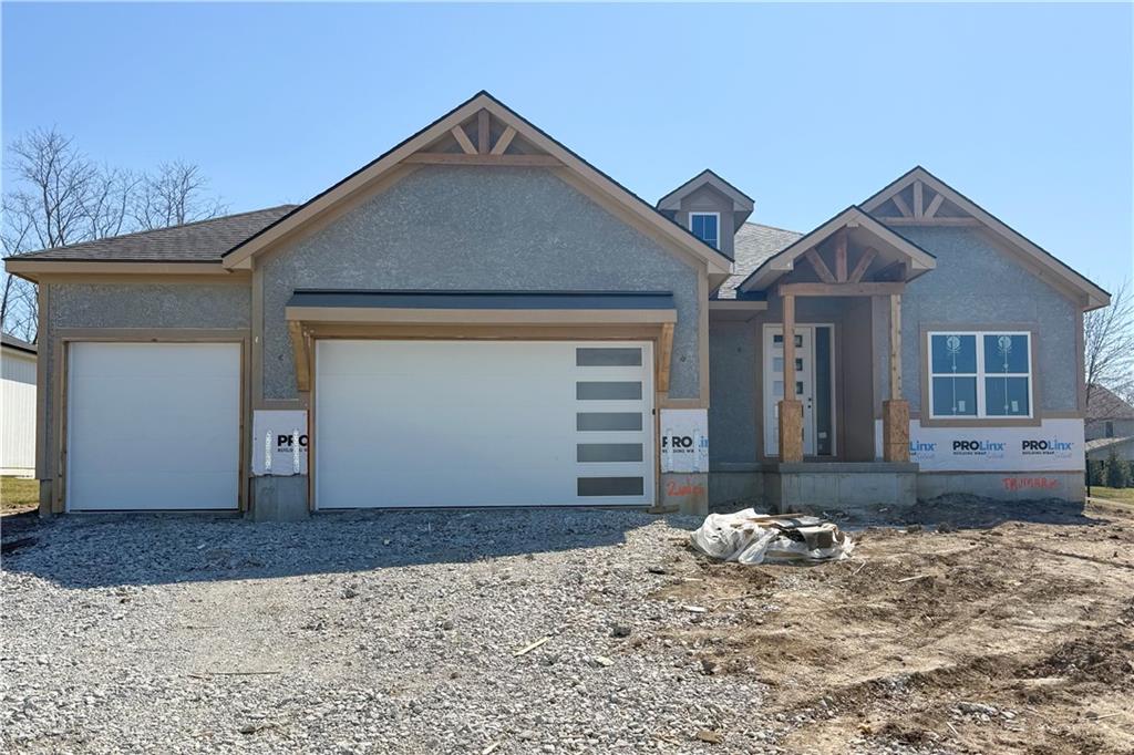 Brand new reverse home coming to you from Trumark Custom Homes! Introducing the "Kyle 1.5"! The vaulted great room stuns with a cozy fireplace and flows seamlessly into the open-concept kitchen featuring a large center island, generous pantry, and stylish dining area with direct access to the covered patio—perfect for indoor-outdoor entertaining. The main-level primary suite is a true retreat with a spa-like bath, an oversized walk-in closet, and convenient access to the laundry room. A second main-level bedroom and full bath add flexibility for guests or a home office. The fully finished lower level offers even more living space with a spacious family room, three additional bedrooms, and two full baths. Step outside to enjoy the covered patio and peaceful, tree-lined backdrop—privacy and new construction wrapped into one beautiful package. While living in Woodland Oaks, enjoy the benefits of exclusive amenities in the surrounding area, including Lake Jacomo! Woodland Oaks is also a short walk away from Legacy Park, with a state-of-the-art community center, and the Legacy Park Amphitheater. Enjoy miles of walking trails, a disc golf course, and sports facilities for all ages, all in a convenient location to your home. Home is under construction and final pricing is subject to change. The specification sheet will outline planned finishes for this property, and supersede any details, photos, drawings, or depictions used for marketing purposes on this listing.
