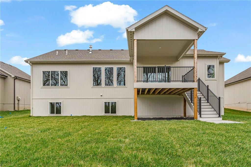 The Bridgeport III floorplan built by Drippé Homes. Open concept daylight basement with tons of natural light! Kitchen furnished with stainless appliances, gas cooktop, hood vent, microwave, wall oven, quartz countertops, large island with oversized sink and spacious walk in pantry. Three bedrooms on main with primary opposite other bedrooms. Ensuite features double vanity, tiled walk-in shower, private water closet and gigantic closet with pass through to laundry. Mudroom off garage with boot bench. Finished basement with two additional bedrooms and rec room complete with wet bar, ready for hosting the next big game. Cozy up to the fireplace in the living room or enjoy the sunrise from the covered composite deck. Home backs to tree-line providing ultimate privacy with sod and sprinkler system included. Unfinished basement storage and three car garage provide plenty of storage. Estimated completion March 2026.
