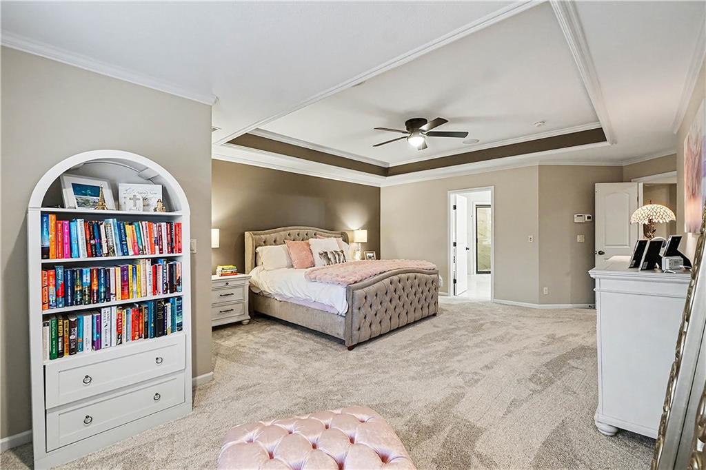 Welcome home to this stunning, highly sought-after Staley Farms community—where memories are made and lifestyle comes first. From the moment you arrive, the charming curb appeal sets the tone with a brick driveway, tile roof, and inviting back sitting porch with a cozy fireplace. The backyard is made for family time, featuring a fabulous patio and fire. With over 5,000 square feet, this beautifully updated two-story home offers 5 bedrooms, 4.1 baths, and a 3-car garage, providing plenty of space. Every inch has been thoughtfully updated with today’s family needs in mind. The main level is warm and welcoming with gleaming hardwood floors, abundant natural light, and a semi-open floor plan. A private home office with double doors offers a quiet work space. The heart of the home is the massive, newly remodeled kitchen—complete with an oversized island, quartz countertops, gas stove, walk-in pantry, and a sunny eat-in area that flows into the hearth room with a fireplace and built-ins. The conveniently located laundry room just off the kitchen adds ease to daily routines. An expansive living room with fireplace opens to the dining room, creating the ideal layout. Upstairs, the spacious primary suite is a true retreat with a sitting area and a beautifully remodeled bath featuring a steam shower, double vanities, and a walk-in closet. Three additional bedrooms with walk-in closets and two full baths complete the second level. The lower features a fifth bedroom/exercise room, full bath, a second family room, and a theater room. Recent updates include newer heating and cooling systems, new lighting, new carpet throughout, refinished hardwoods, new hot water tanks, and so much more. The home has been meticulously maintained and is truly move-in ready. Enjoy all that Staley Farms has to offer, including a clubhouse, golf course, pool, walking trails, and a strong sense of community. This is more than just a house—it’s a place to grow, gather, and create lasting memories.