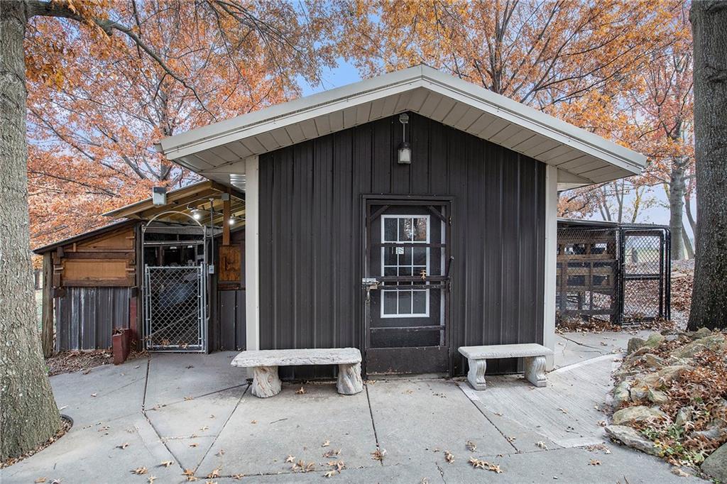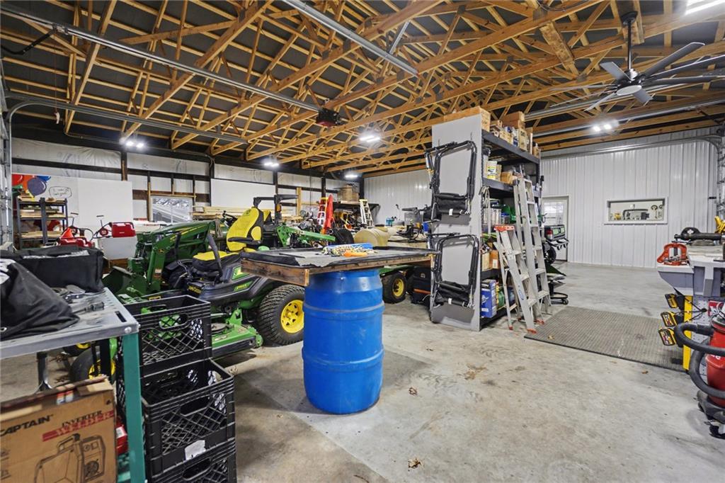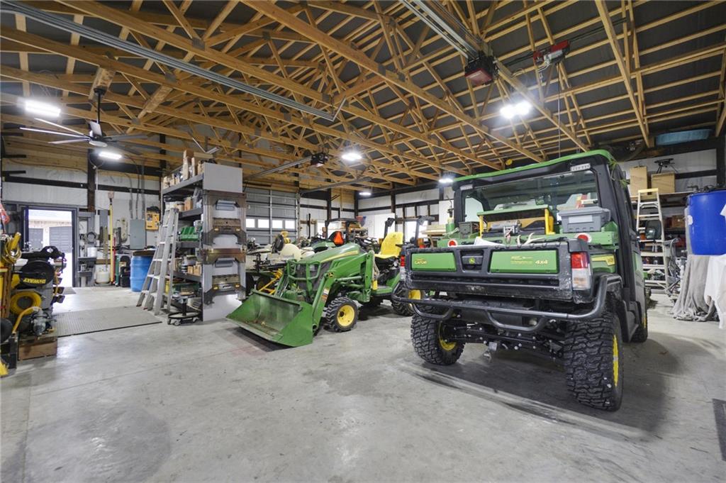 This breath-taking, custom-built brick estate is set on 3.94+/- Acres. Carefully maintained, this impressive property offers over 4,500 sqft of finished living space and boasting multiple well-equipped outbuildings that seamlessly blend convenience w/functionality. The main level offers a front formal dining room & a sun-filled family room overlooking the serene backyard. The exceptional kitchen includes stone counters, a large island, built-in appliances, a gas cooktop & opens seamlessly to the living room. A breakfast nook provides casual dining, while the oversized laundry room includes pantry & storage closets plus a convenient full bath. The primary suite is a true retreat w/vaulted ceilings, separate his-and-hers walk-in closets, & a spa-like ensuite showcasing a dual-sink vanity & center whirlpool tub. Vaulted ceilings, solid hickory cabinetry, trim & interior doors are found throughout, highlighting the quality craftsmanship. Secondary bedrooms are generously sized w/excellent closet space & nearby bath access. The walkout lower level expands the living space w/a large family/rec room, a den that could serve as a non-conforming 5th bed, a full bath & a wetbar ideal for entertaining. Efficiency upgrades include radiant in-floor heat, LP gas furnace, multiple A/C systems, a Bosch electric boiler, high-efficiency water softener & 13 solar tubes for abundant natural light. More features include Andersen casement windows, a newer composition roof, five solar roof fans & R49 attic insulation. Outdoor living shines w/open & covered patio areas, a custom firepit & concrete walkways. The beautifully landscaped grounds feature mature oak, white pine trees, fruit trees, a working windmill, gazebo & storm cellar. Outbuildings include a 40’x60’ insulated shop w/heat, A/C, water, sink & urinal; a 27’x84’ Cleary building w/(4) 16’ automatic overhead doors & electric; an insulated chicken coop, livestock building & fenced dog kennel w/water access.