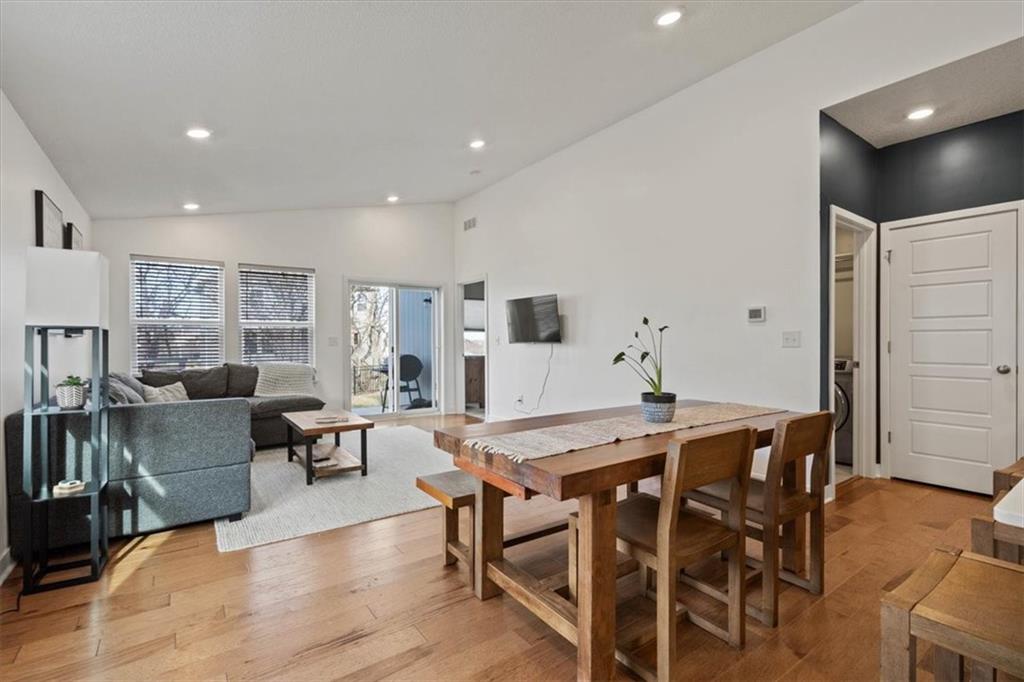 This striking modern home blends clean architectural lines, open-concept living, and elevated finishes to create a refined yet welcoming space designed for both everyday living and effortless entertaining. From the moment you arrive, the home makes a statement with its contemporary curb appeal and inviting presence. Inside, an open-concept layout is filled with natural light, enhanced by expansive windows and soaring ceilings that create a seamless flow between living, dining, and entertaining spaces. The heart of the home is the sleek, bright white kitchen, featuring stainless appliances, and a large island with seating. The master suite serves as a private retreat, complete with a walk-in closet, and fresh paint, pine shiplap and custom mirrors in master bathroom space. Finished basement provides plenty of extra living space with a rec room, gym area, kitchenette, 3rd bedroom and half bath. Situated in a desirable Overland Park location, this home offers the perfect blend of modern luxury and suburban tranquility, with easy access to the neighborhood pool, walking trails, shopping, dining, parks, and top local amenities. Every detail has been carefully curated to support a refined yet approachable lifestyle, making this property a standout opportunity for buyers seeking contemporary design, quality craftsmanship, and a place that truly feels like home.