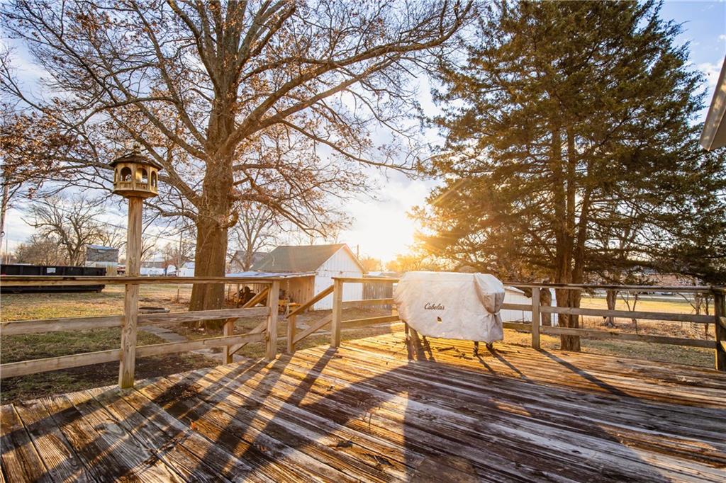 Charming and completely remodeled 4-bedroom, 1-bath bungalow located in the quiet rural community of Blue Mound, Kansas. This property sits on six city lots totaling nearly one acre, offering plenty of space and privacy rarely found in town. The home features a beautifully updated kitchen and a fully remodeled master bath, combining modern finishes with classic bungalow character. Outbuildings include a garage, a barn equipped with two piped runs, and an additional shed—ideal for livestock, hobbies, or extra storage. A natural gas Generac backup generator provides peace of mind in case of electrical outages. Enjoy small-town living with room to spread out, garden, or keep animals. This is a unique opportunity for those seeking space, functionality, and a move-in-ready home in a rural setting.