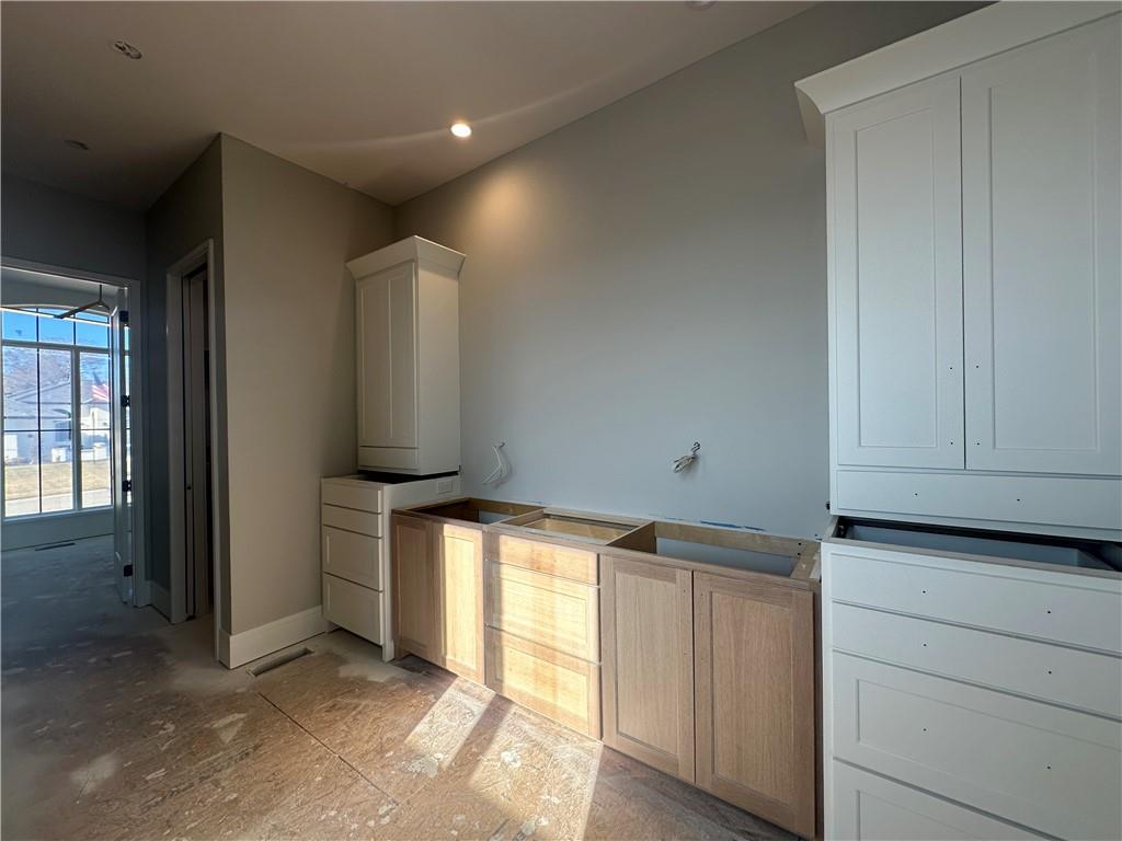 Nearly Complete New Construction Reverse 1.5 Story on an estate lot in unincorporated Platte County. 4 Bedrooms, 4 Full & 2 Half Baths, 4-Car Garage. Double-door entry with feature lighting opens to living room with linear fireplace and double sliders to covered deck. Designer kitchen with stained & painted cabinets, oversized island, dining area with statement lighting, and butler’s pantry. Luxurious primary suite with tray ceiling, chandelier, spa bath featuring freestanding tub, zero-entry shower w/ dual heads, abundant vanity storage, connects to laundry and large walk-in closet. Finished lower level includes back bar, Beds 3 & 4 w/ private baths and walk-in closets, plus suspended garage w/ roll-up door for exceptional storage all on an Estate Sized Lot. Estimated Spring 2026 Completion.