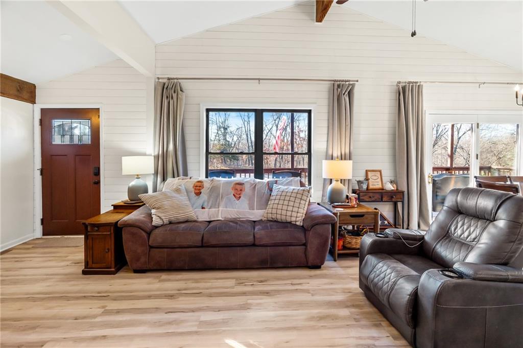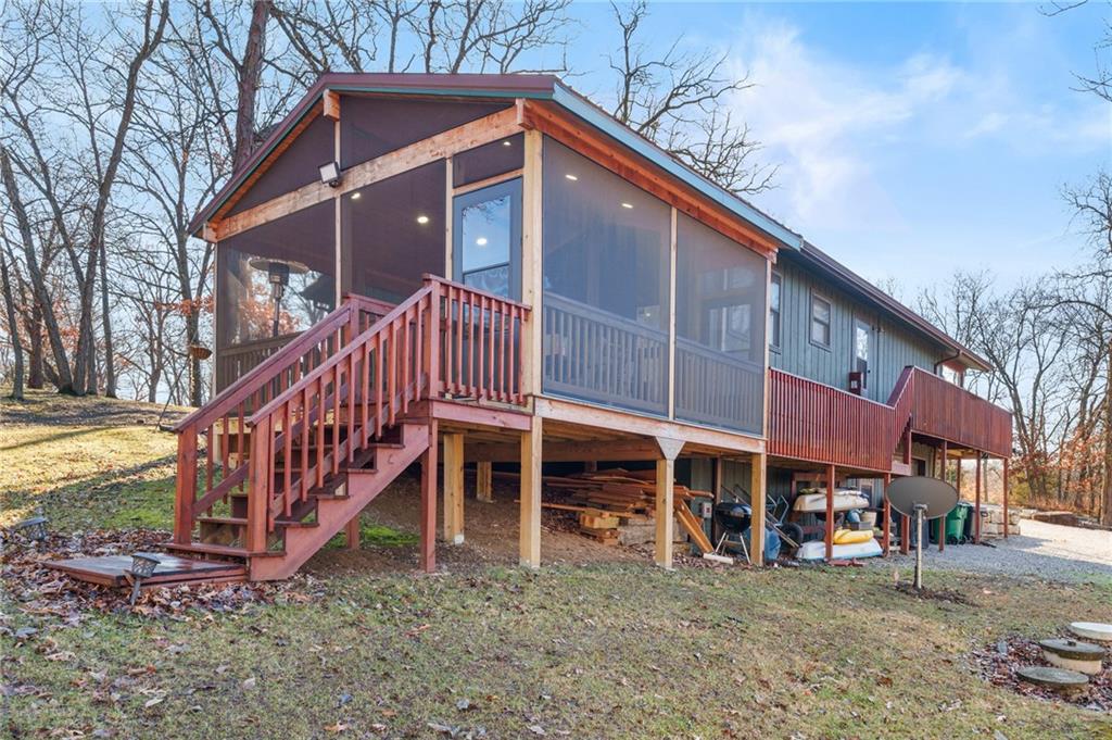 Lake Viking rare find with a boat slip at the Yacht Club. This property is situated on 1.3 acres near the South Entrance and offers a private, wooded setting with abundant wildlife and a treehouse-like feel. The home features 3 bedrooms and 3 bathrooms with numerous recent updates, including a new roof, new flooring, shiplap accent walls and ceilings, and fresh paint throughout. The open-concept kitchen includes freshly painted cabinets, quartz countertops, and comes fully equipped with appliances, including the washer and dryer. The primary bedroom offers a shower and a large window with peaceful views of the wooded lot. For those seeking a quiet retreat, the large covered and screened-in porch provides an ideal space to relax and enjoy the natural surroundings. The unfinished basement includes a pellet stove and offers excellent potential for a workshop or future finished living space. Additional features include a one-car garage. The sellers are open to offers on furnishings, and the boat is available for purchase separately. Professional pictures coming soon!