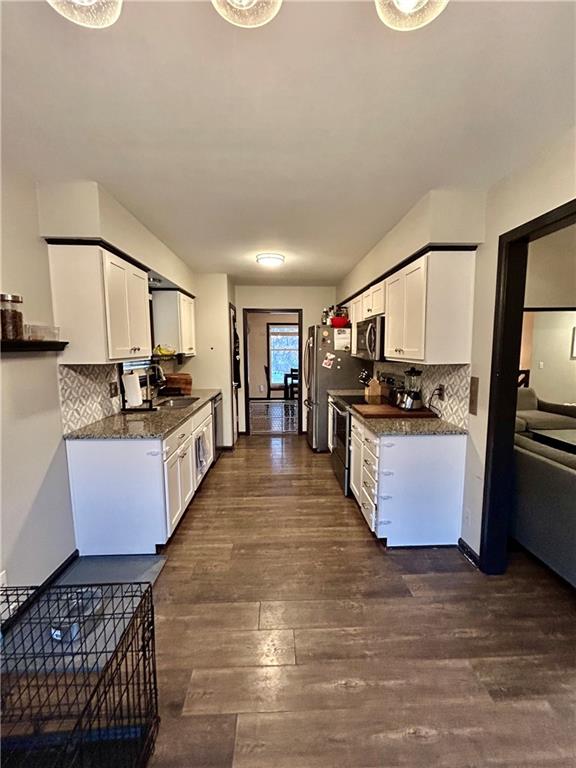 Beautiful raised ranch home on a quiet road. Situated convenient to I-29, Frederick ave, and N belt highway. Enjoy cozy winter nights next to the fireplace or entertain guests in the finished basement rec space. This home boasts 3 beds with additional 4th non conforming bedroom on basement level, 2 and half baths, formal dining, eat in kitchen, large fenced in backyard with deck, large 2 car basement garage and bedroom level laundry. Updates include flooring, newer roof, furnace, hot water tank, A/C, sprinkler system and appliances.