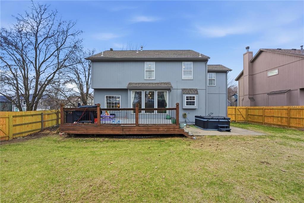 Welcome to this beautiful home, located within walking distance of Riverview Elementary in the highly sought-after De Soto School District. This home is full of thoughtful upgrades you won’t want to miss, including brand-new carpet in the living room, dining room, and staircase, all new light fixtures on the main level and in the upstairs bedrooms, all new Kitchen appliances (Oct 2025) and a newly installed fence valued at $5,100. Step outside to a spacious backyard designed for both fun and relaxation, featuring a composite deck and hot tub—perfect for entertaining or unwinding at the end of the day. As an added bonus, two large TVs will remain with the home, and the existing home warranty can transfer to the buyer, providing added peace of mind through 8/8/26. The main level offers a welcoming living room with a cozy fireplace, a kitchen with granite countertops, and a formal dining room ideal for gatherings. Upstairs, you’ll find a spacious primary bedroom, three additional bedrooms, and the convenience of a laundry room located on the bedroom level. The finished basement expands the living space with a second family room, a bonus room ideal for a home office or non-conforming fifth bedroom, and a full bathroom. Additional updates include fresh exterior paint (July 2025), a roof approximately one year old, four newly replaced front-facing windows, and a brand-new hot water heater. With its extensive updates, incredible features, and prime location near parks and trails, this home offers an exceptional opportunity to buyers!