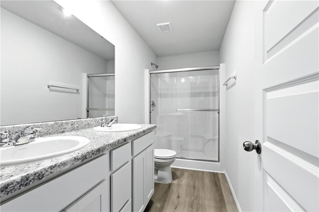 Our popular Armstrong plan is a single-story home that is host to a spacious and flexible open-concept layout shared between the kitchen, living and dining areas for simple everyday transitions and multitasking. Two bedrooms share a private hallway, while the luxe owner’s suite boasts a private location at the back of the home, complete with a full bathroom and walk-in closet. There is a covered patio to enjoy as well! Photos are of a finished home. This will be completed beginning of April. The floorplan is the same. The photo of the colors are the colors that will be going into the home. The additional photo of the Ice colored Quartz is going in the kitchen.