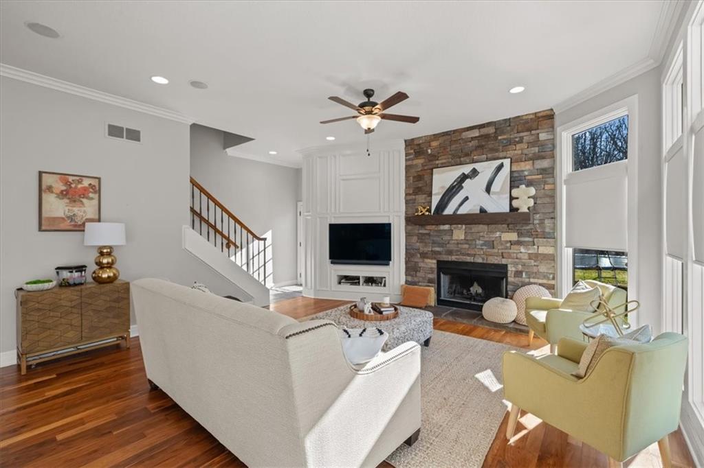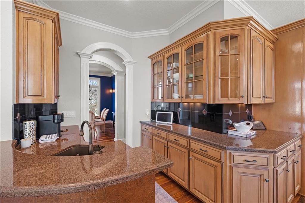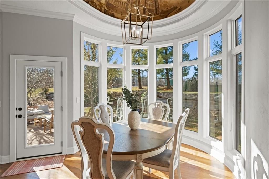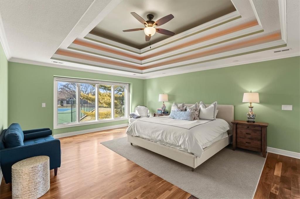 Beautiful design meets convenience and function in this architectural showpiece in the coveted Riss Lake community. With only three of these custom homes ever constructed, this Mark Bolling home will take your breath away. A hand painted mural, hidden children's nook, and 3 separate outdoor spaces, this home is truly special and not like anything you have seen at the lake. Earthy stone accent walls, beautiful wide plank walnut floors, multiple living and dining spaces and a grand kitchen make the main floor great for intimate evenings at home or perfect for entertaining. All bedrooms are spacious and privately appointed with their own en-suite baths. The owner’s suite is a true retreat, offering spa-caliber finishes including an oversized double walk-in shower and a secluded martini deck for quiet relaxation. The walkout lower level is designed to impress, featuring a full second kitchen, expansive recreation and entertainment area with a large projection screen, a dedicated workout room with sauna, and a rare suspended garage ideal for additional storage. Throughout the approximately 5,500 square feet, you’ll find custom built-ins, smart home technology by Applause Home Audio and Security, and numerous recent updates—including new carpet and new windows—enhancing both Room to spread out but a layout that still feels cozy is what makes this really feel like the perfect family home. Step outside and enjoy unparalleled access to the amenities that define Riss Lake living. Why maintain a pool when the neighborhood saltwater pool, tennis courts, and playground sit just beyond the back door, while the community’s 135-acre recreational and fishing lake is only two blocks away. Architecturally distinctive, and impeccably crafted, this home represents a rare chance to own something truly special.