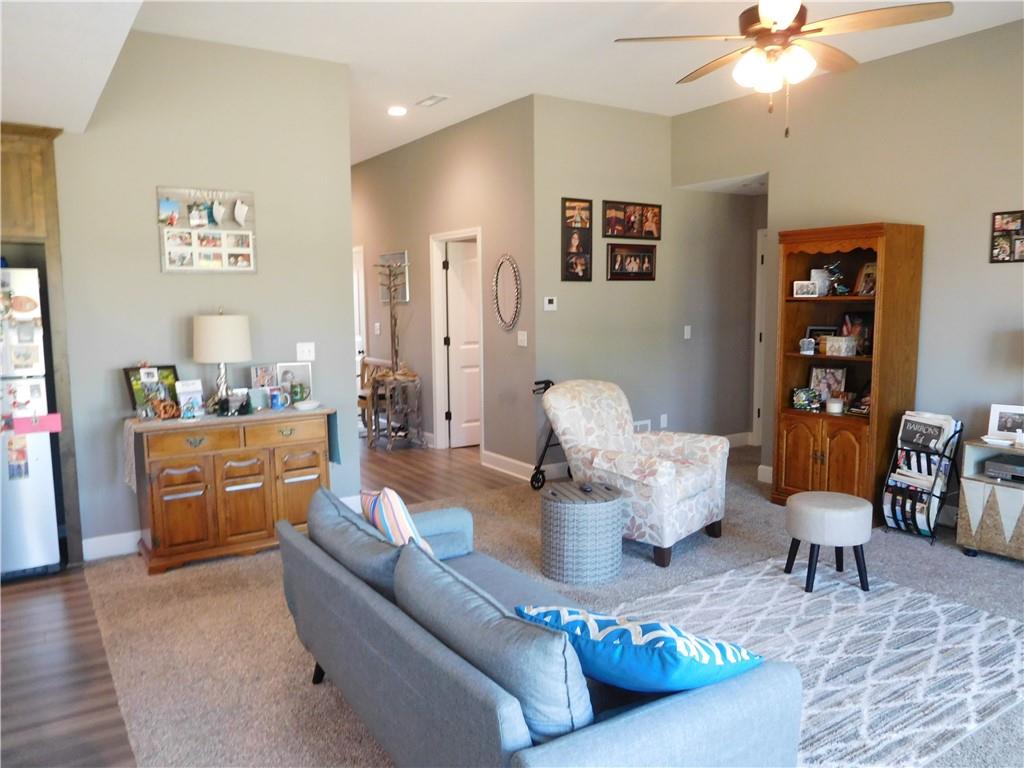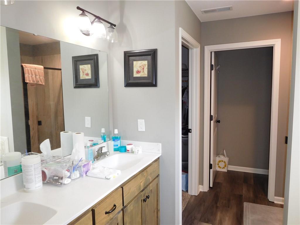 Beautiful home! Great location! Enjoy easy living with maintenance free vinyl siding with beautiful stone accent. No stairs, and extra wide door ways! Very open and inviting main floor. Kitchen offers gorgeous granite, Chefs dream island and oversized walk-in pantry with floor to ceiling shelves. custom cabinets, upgraded wood flooring and custom installed blinds. All 3bedrooms have walk in closets. Come enjoy the view that has you feeling like the country with nice green space behind and installed sprinkler system. Laundry is a true room to accommodate full size washer and dryer.