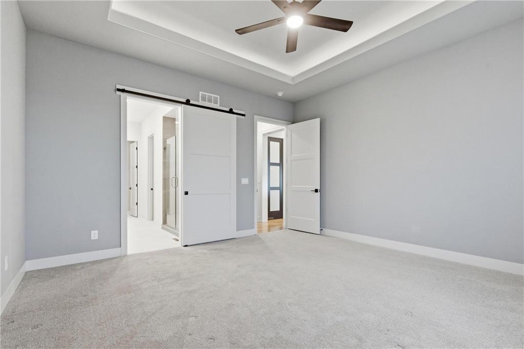Built in late 2022 by the esteemed Don Julian Builders, this beautifully designed Reverse 1.5 story home is tucked within the premier Bristol Highlands Villas—where maintenance-provided living meets the peace and privacy of rolling hills and protected green space. Just minutes from Shawnee Mission Park, scenic trails and lakes, Lenexa City Center, dining, shopping, De Soto schools, and highway access—yet perfectly secluded—this home truly offers the best of both worlds. Thoughtfully designed for main-level living, the primary suite is a private retreat featuring separate vanities, luxurious soaking tub, walk-in shower with bench, and a spacious walk-in closet with direct access to the laundry room . A stylish powder room for guests and a dedicated office with double doors add both function and flexibility upstairs. The great room features custom built-ins, gas fireplace, and a seamless flow to the covered + screened deck overlooking tranquil green space with privacy! The kitchen—designed for entertaining and everyday living, showcases an oversized island with storage and seating, custom cabinetry to ceiling, quartz, and walk-in pantry. All SS appliances stay, including a newer KitchenAid dishwasher and high-end KitchenAid refrigerator! The walkout lower level is ideal for guests and gatherings, featuring a chic wet bar with beverage fridge, built-in microwave, and island. A cozy family room with slider access to the covered patio is perfect for movie night. One bedroom enjoys easy access to a full hall bath, while 2 additional bedrooms share a Jack-and-Jill bathroom with tub—perfect for hosting family & visitors. Features include high-efficiency HVAC, Lennox smart thermostat, ADT security, automatic privacy screens for the patio and deck, automatic blinds throughout, hardwood floors, and a coveted location backing to community green space. Low-maintenance living. High-end finishes. Don’t let this one pass you by—homes like this are truly special.