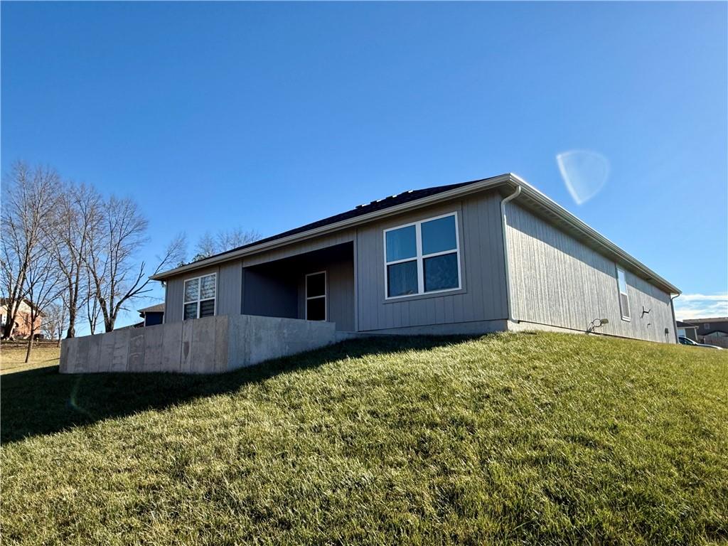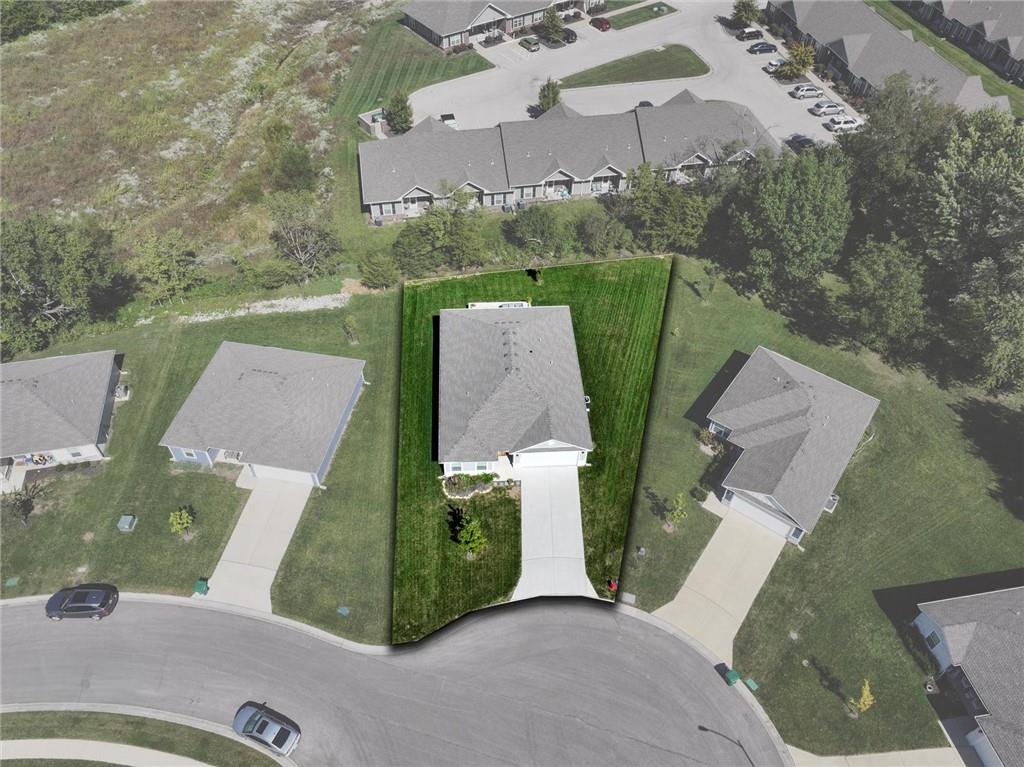 Enjoy comfortable one-level living in this inviting 3-bedroom, 2-bath ranch home located in a desirable area of Paola—just minutes from downtown, schools, and everyday conveniences. Built just two years ago, this lightly lived-in home features an open, airy floor plan filled with natural light. The kitchen is thoughtfully designed with a large island, ample counter space, and a walk-in pantry, making it ideal for both daily living and entertaining. The spacious owner’s suite offers a generous walk-in closet and a bathroom with room to add a future vanity or soaking tub. Outside, unwind on the covered back porch or expanded patio while enjoying tranquil views of the green space and the wildlife it attracts.