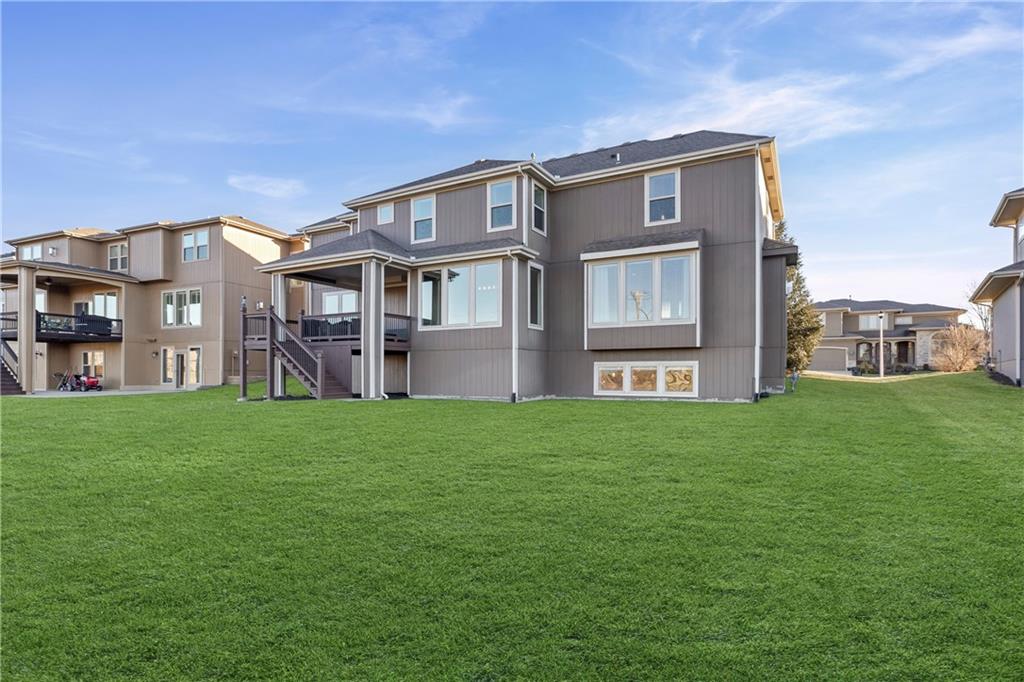 RARE BLUE VALLEY BEAUTY THAT BACKS TO GREENSPACE!!!! Come check out this beautiful two-story home offering over 4600 square feet, 5 bedrooms, 6.5 bathrooms and situated on a daylight lot backing to community GREENSPACE! The 'Hepton' floorplan was thoughtfully designed with expansive living and entertaining areas, a huge kitchen island plus a butler pantry. All bedrooms feature their own PRIVATE EN-SUITE BATHROOMS and the finished lower level includes a bar and sizeable rec room with potential to add a 6th bedroom if needed. Bonus features include hardwood maple floors, granite tops, multi zone irrigation and hardwired security system. Conveniently located near Blue Valley West High, Pleasant Ridge Middle and Cedar Hills Elementary.