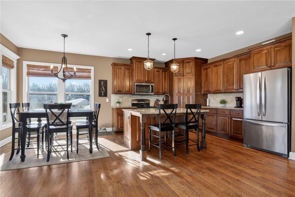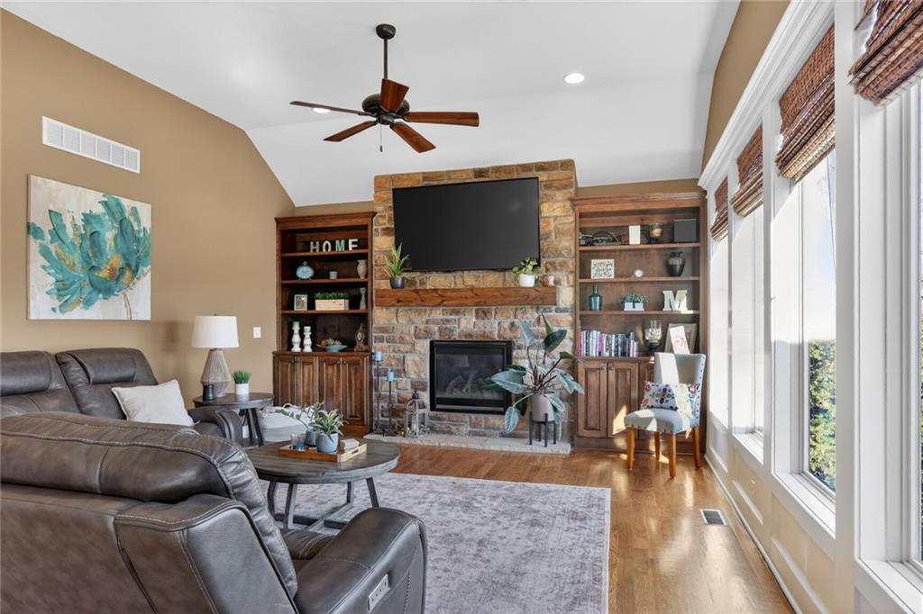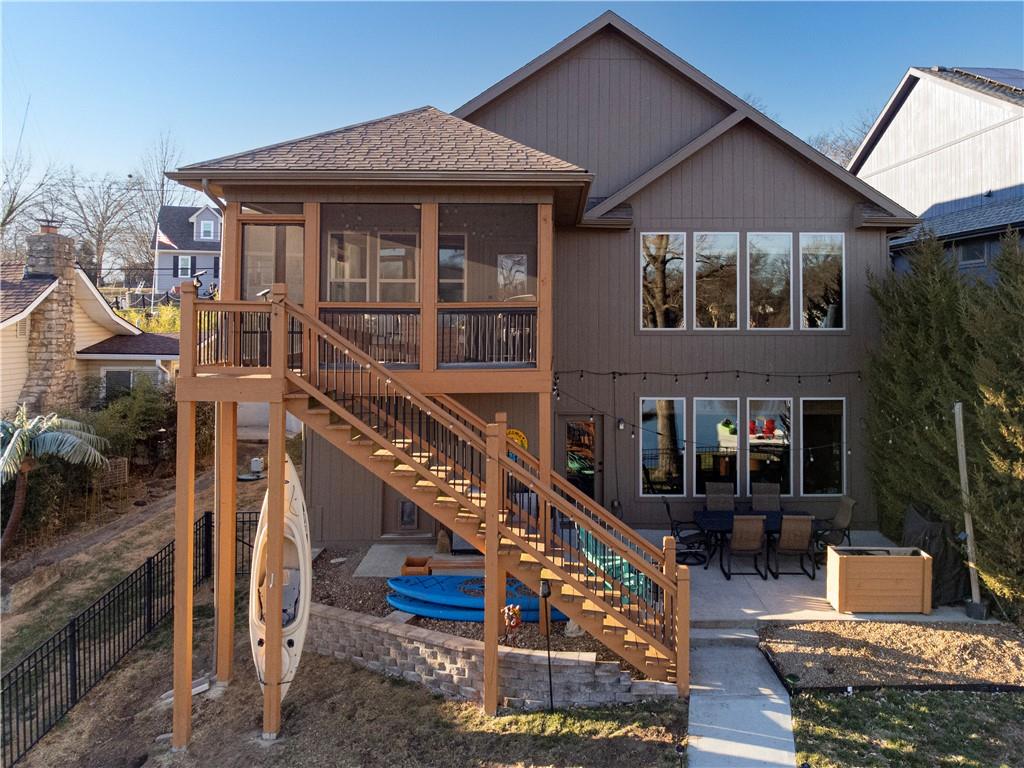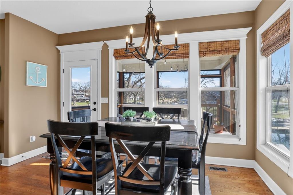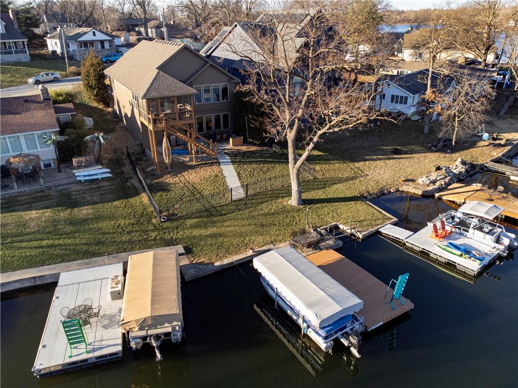 RARE FIND at Lake Tapawingo! Custom Built in 2015, this tastefully designed REVERSE RANCH with THREE CAR GARAGE is MOVE IN READY! The Spacious Entry welcomes you home and leads to the the most spectacular views of the Lake so you will never miss a sunrise or sunset. Main level has beautiful hardwood floors. Great Room with easy start Stone Fireplace has Bookcases on either side and floor to ceiling windows. You'll love the well equipped Kitchen with warm wood cabinetry, granite countertops, island and HUGE WALK-IN PANTRY. Dining area opens to a screened porch that overlooks the wide peaceful cove. Primary Suite with vaulted ceiling has spacious bathroom with walk-in shower, double vanities and walk-in closet. Uniques features on the main level include access to laundry from primary suite closet and hallway and a convenient built in desk with cabinets. A Half Bath for guests completes the main level. The Lower Level has two spacious bedrooms, full bathroom, wet bar, rec room, storage area and an Super Bonus Room with lake side access for storing your lake toys or lawn furniture, and there's a doggie door too! Fenced yard and premium outdoor entertainment area with patio, dock and amazing views of the Lake. Three car garage with bays that will accommodate a large pickup truck. There's always something to do at the Lake! Fishing, Boating, Swimming, Pickleball, Tennis, Walking Trails, Women's Club, Sportsman's Club and many community events through the year.