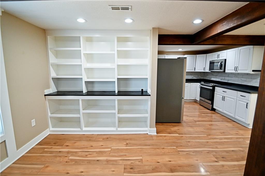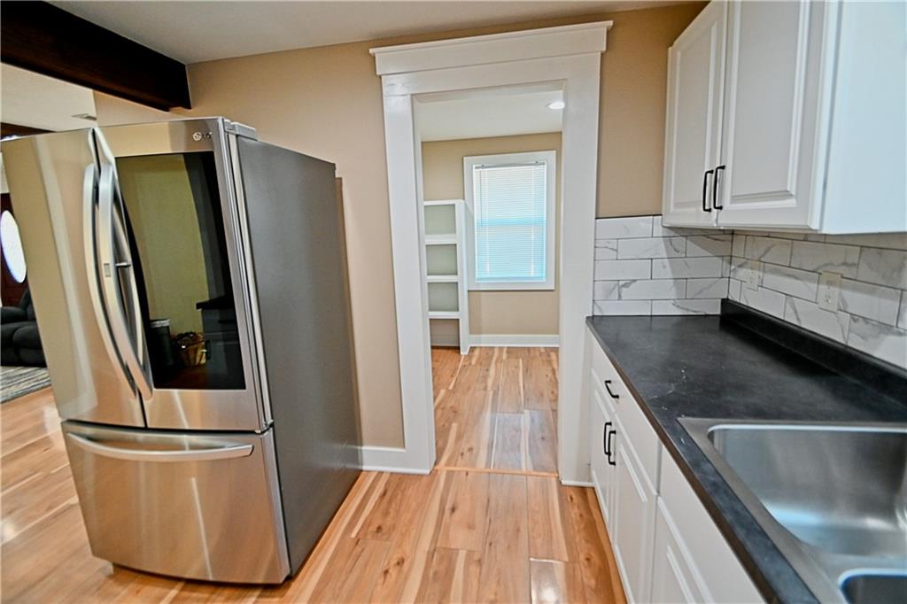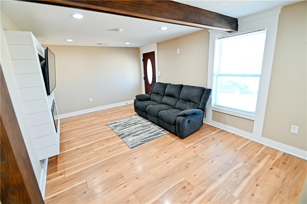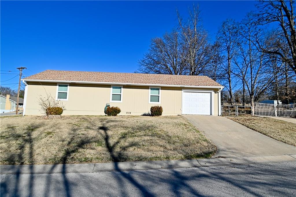 **Please submit all offers by Sunday, January 18th at 4:00pm.** Welcome to your BEAUTIFULLY updated home! Step into a warm and inviting space highlighted by a built-in smart electric fireplace. With this open floor plan, you can easily get to the kitchen which boasts all newer appliances including a see-through fridge/freezer combo, stove, oven, and microwave as well as a SPACIOUS walk-in pantry. The updated counter tops, cabinets, and back splash add even more stunning touches. It provides ample storage for all your culinary needs. The updates continue throughout the entire home as you walk through the 3 bedrooms and spacious bathroom. You'll find hardwood floors in immaculate condition, and neutral paint making this home ready to move into with the lovely bonus of keeping the washer and dryer if you'd like. Even more so, walk outside and enjoy nearly half an acre of fenced-in space! This yard is perfect for entertaining, pets, gardening, a fire pit, numerous outdoor activities, or just enjoying the fresh air. This home is a prime location, minutes from shopping/entertainment/and tons of great food at Tanger Kansas City at Legends (formerly called Legends Outlets). Don't miss your chance to make it yours. Schedule a showing today! Please send e-mail all offers to: rbraggs@weichertgenerations.com