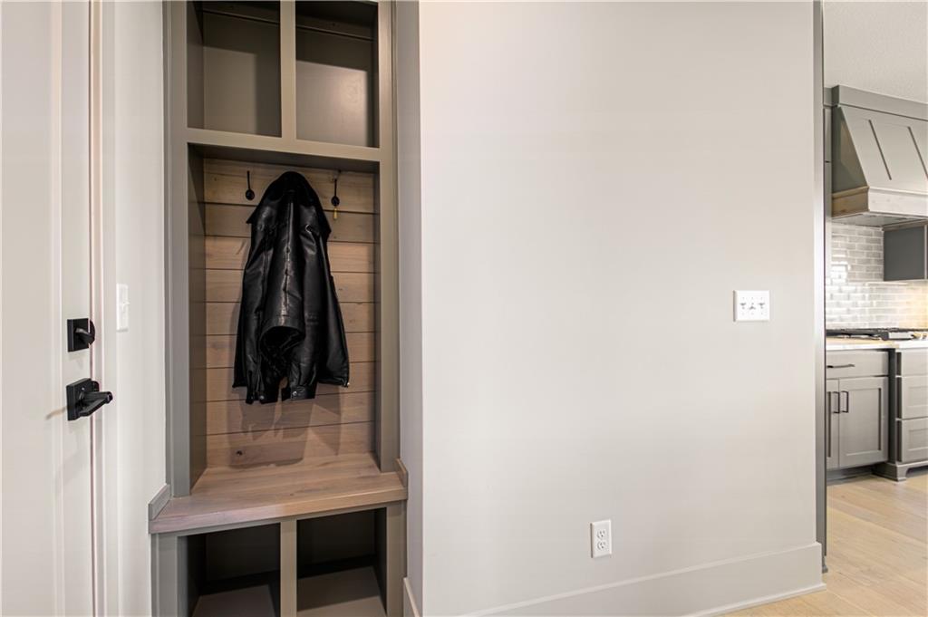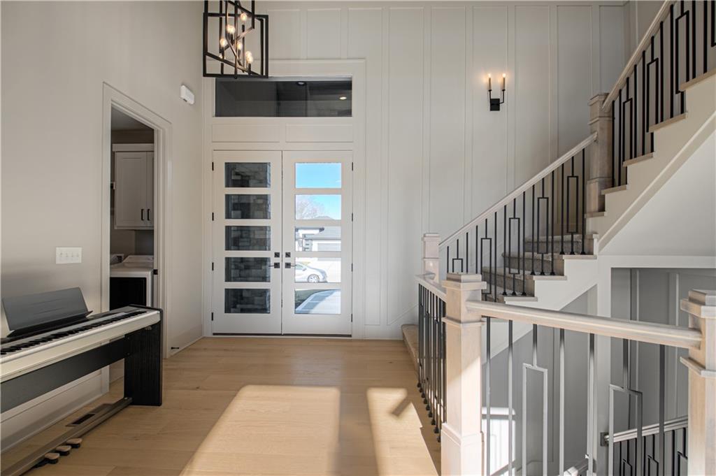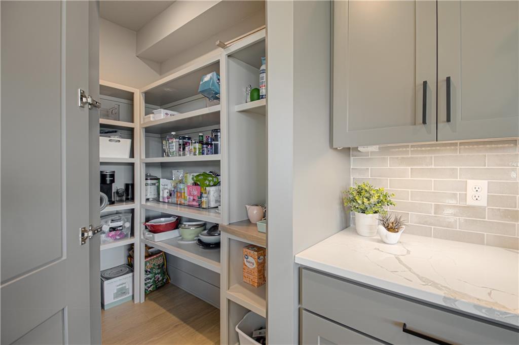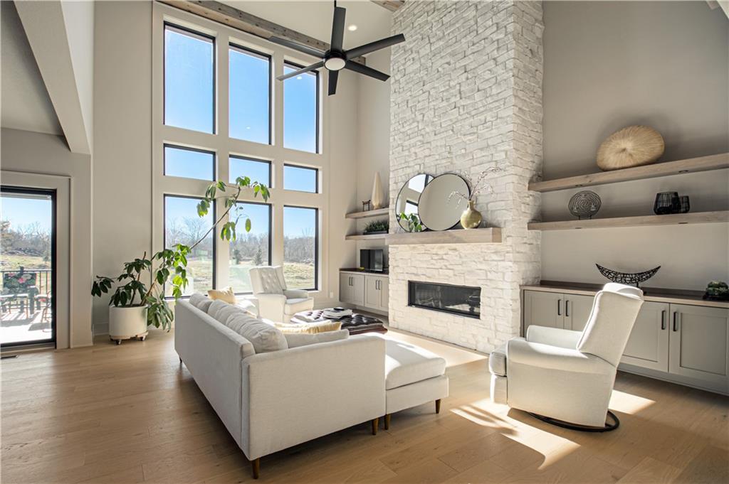 Stunning Light Filled Home with Soaring Ceilings-Barely Lived In and Better Than New! Gorgeous Great Room with Wall of WIndows and 18 ft ceilings, Floor to Ceiling Stone Fireplace and Built Ins! Open Concept floor plan! Gorgeous Hardwood Floors Throughout. Chef's Kitchen includes Oversized Island, Gas Cooking with Hood, SS Convection Oven, Refrigerator, Dishwasher and Microwave. Large 7x4 ft Walk in Pantry. Boot Bench off Garage. Charming Powder room with Decorative Tile feature wall. Spacious Dining Room.10 ft Slider opens to Covered Deck with Stone Fireplace and Maintenance Free Composite Floor. Luxurious Primary Bedroom includes feature wall and Hardwood floors. Luxurious Primary Bath includes Zero Entry Shower, Soaker Tub, Double Vanities with Solid Surface Countertops. 10x8 Walk in closet with amazing built ins including drawer storage and full length mirror. Primary Closet connects to Laundry room - Washer and Dryer stay! Upper level includes Three spacious bedrooms, a jack and jill bathroom and full bath attached to bedroom 4! Amazing upgrades throughout including additional feature walls, dramatic staircase, upgraded black trim windows! Estate lot backs to greenspace. Woodland Trails is a fabulous outdoor lifestyle community with miles and miles of paved walking trails, resort style pool, playground, sports field and fishing pond with fishing dock.