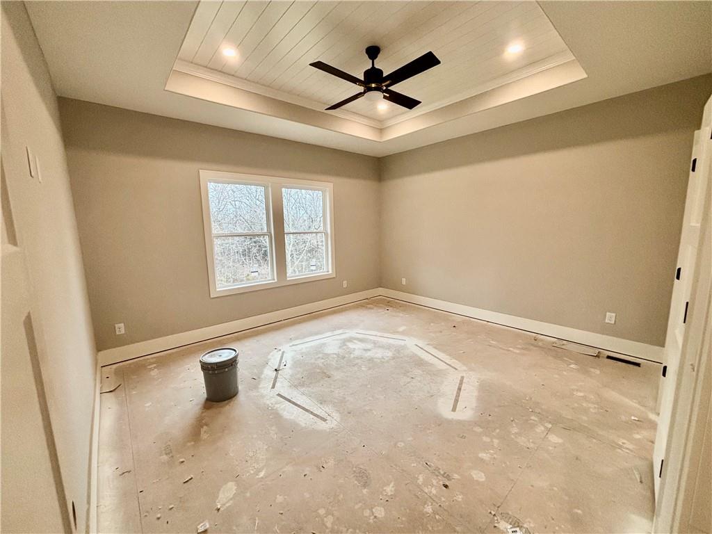 North Creek's newest Reverse 1.5 sty, the Ashton II by Kevin Higdon Construction gives you everything you love from our popular Ashton plan on a larger scale. The impressive open floor plan offers plenty of room for entertaining or just hanging with the family. Generous bedroom sizes including the main level primary suite with stunning en-suite bath and incredible closet space. The spacious kitchen will make cooking a joy with the large quartz countertop island, beautiful combination of stained and painted cabinetry plus large pantry. Enjoy stepping out onto the covered deck or patio after dinner to enjoy the serene setting backing to trees. Or perhaps move downstairs and watch a movie in the expansive recreation room with wet bar. Two additional bedrooms and bath on this level as well. This stunning home is sure to impress and qualifies for USDA 0% down financing.