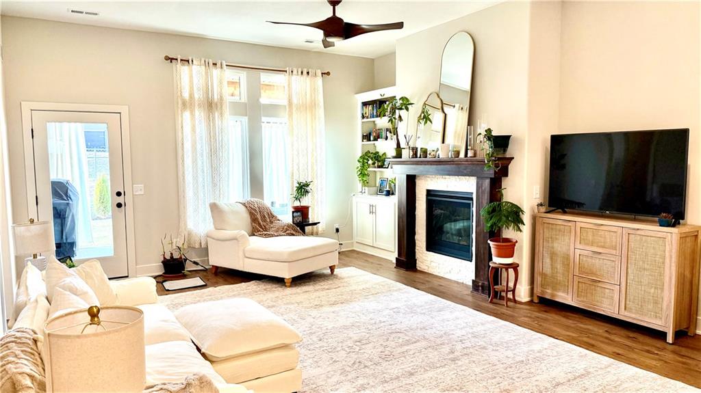 Welcome to this stunning 2-bedroom, 2-bathroom townhome in the sought-after Greens of Ashland community. Built less than a year ago, this home feels practically brand new and offers a perfect blend of comfort and modern style. Step inside to a bright, open floor plan featuring a custom tile kitchen with beautiful finishes and ample storage ideal for both everyday living and entertaining. The cozy fireplace and built-in bookshelf create a warm, inviting living space. Enjoy your mornings on the front porch watching the sunrise, and unwind in the evenings on the covered back patio, perfect for relaxing or hosting friends. With lawn care and snow removal included, you’ll have more time to enjoy everything this low-maintenance lifestyle has to offer. Don’t miss your chance to own this charming, move-in-ready home in a peaceful, convenient location!