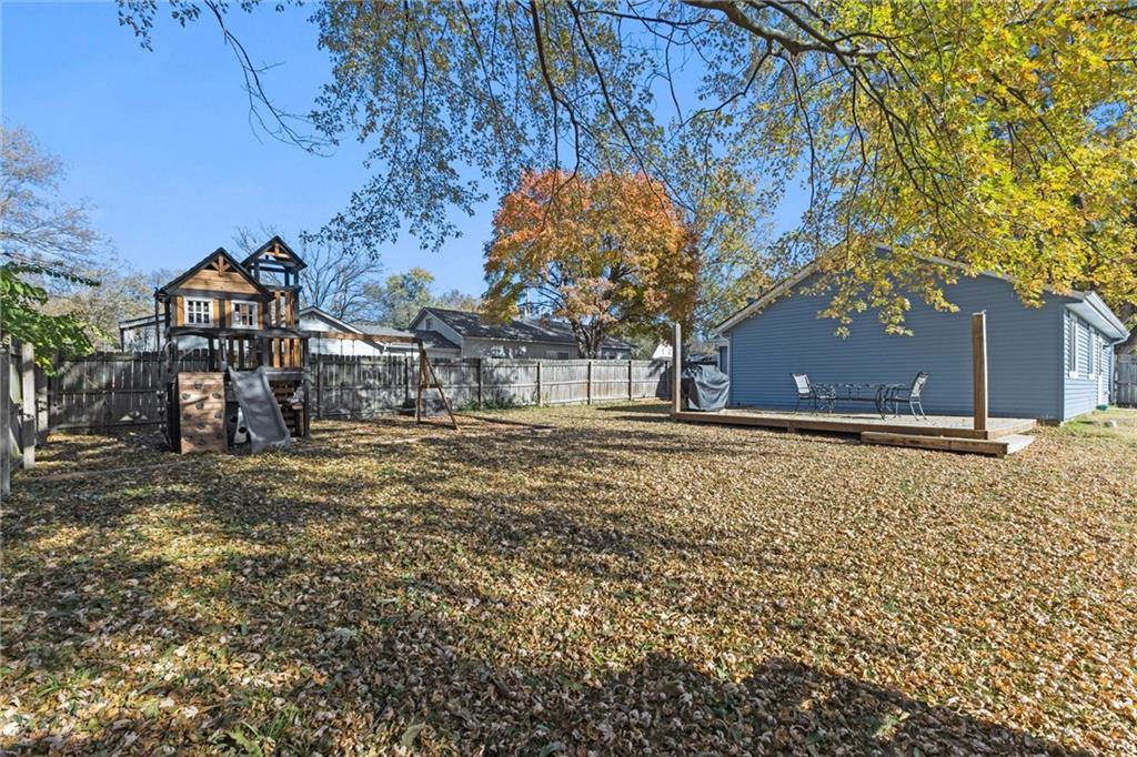 Welcome to this charming and thoughtfully designed home — the perfect blend of comfort, style, and functionality. Step inside and instantly feel the warmth of this 3-bedroom, 1-bath gem, where every inch of its 864 square feet has been beautifully maximized. The open-concept design and soaring 12-foot ceilings in the living room create an unexpectedly spacious feel, inviting natural light to pour in and making every gathering feel special. The heart of this home is its seamless flow — from the cozy living area to the cheerful kitchen and dining spaces — offering the ideal layout for relaxing nights or hosting family and friends. Step outside to your very own backyard oasis — complete with a brand-new deck, a cozy fire pit area, and plenty of room to play or unwind. Kids will love the playground set, and you’ll appreciate the bonus shed for extra storage. The large one-car garage adds practicality and convenience to this already perfect package. And location — this home is incredible! Nestled in a desirable area that’s close to everything you need. You’ll enjoy easy access to parks, schools, shops, and dining while still feeling tucked away in your own peaceful retreat with no neighbors on one side, making the home feel even more peaceful. Whether you’re a first-time homebuyer, looking for a change, or downsizing, this home offers the perfect mix of charm, ease, and everyday livability. Come fall in love — this is the one you’ve been waiting for.