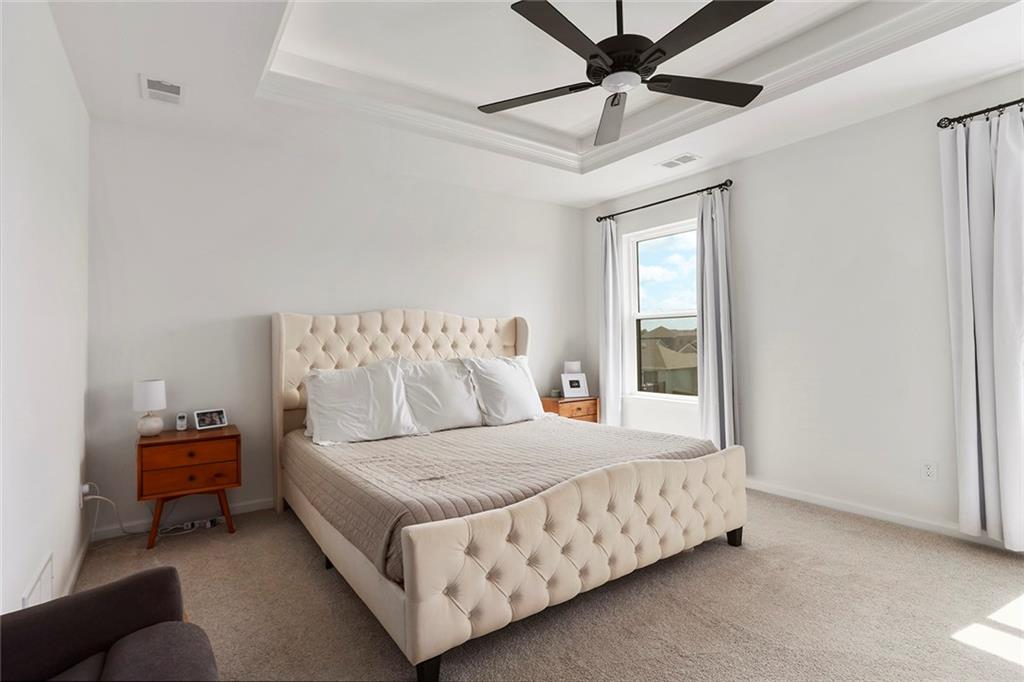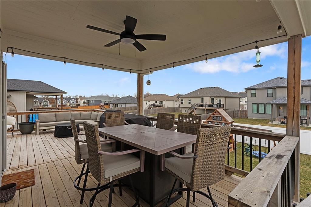 This Modern Farmhouse Was Built to Be Lived In—Not Just Looked At. This three-year-old modern farmhouse proves that great design should work as beautifully as it looks. From the moment you step inside, the open floor plan and abundant natural light do what good architecture always does: they make you feel at home. The kitchen is the command center—generous prep space, two pantries, and a layout that supports real cooking, real entertaining, and real life. Nearby, a thoughtfully designed drop zone keeps daily chaos organized without effort. Upstairs, the primary suite offers the kind of privacy and comfort most people don’t realize they want until they have it: an oversized walk-in closet, a deep soaker tub, and a spacious walk-in shower designed for unhurried mornings. Three additional large bedrooms provide flexibility for family, guests, or work-from-home needs, while the upstairs laundry is exactly where it should be—close, convenient, and practical. The lower level extends the home’s usefulness with a fifth bedroom suite or private office and a custom media room that turns ordinary evenings into something worth staying in for. Outside, the home continues to deliver: a covered deck for year-round enjoyment, irrigation system, play gym, and a new PVC privacy fence that offers both security and peace of mind. This is not a house designed to impress for five minutes. It’s a home designed to satisfy for years.