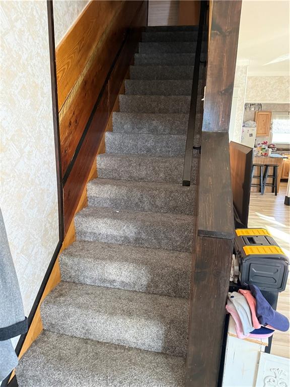 Cute bungalow! It's a 1 1/2 story home with two bedrooms and bath upstairs. Two bedrooms on main floor. Big living room and dining area and a nice kitchen with newer cabinets. Kitchen island and a lot of cabinets. Big laundry room for extra storage.