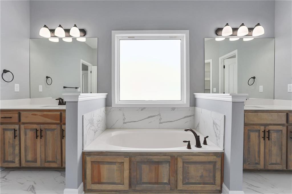 The Sierra is a beautiful reverse 1.5-story home designed with comfort, style, and functionality in mind. The open main level features rich hardwood flooring, 9-foot ceilings, and a seamless flow throughout the living, kitchen, and dining areas. The gourmet kitchen showcases an impressive oversized island, under-cabinet lighting, and gas plumbing for the range—perfect for both everyday living and entertaining. The dining area opens to a covered deck, ideal for relaxing or hosting guests. The elegant primary suite offers a spa-inspired bath and a spacious walk-in closet, creating a serene retreat after a long day. The finished lower level includes two additional bedrooms and a large rec room, providing plenty of flexible living space. Additional features include recessed lighting in the living room, a dedicated freezer circuit in the garage, comfort height toilets, and a zoned irrigation system for easy maintenance and convenience. Photos are stock photos of the floor plan. HOA takes care of lawn, snow removal, and maintenance of sprinkler system.