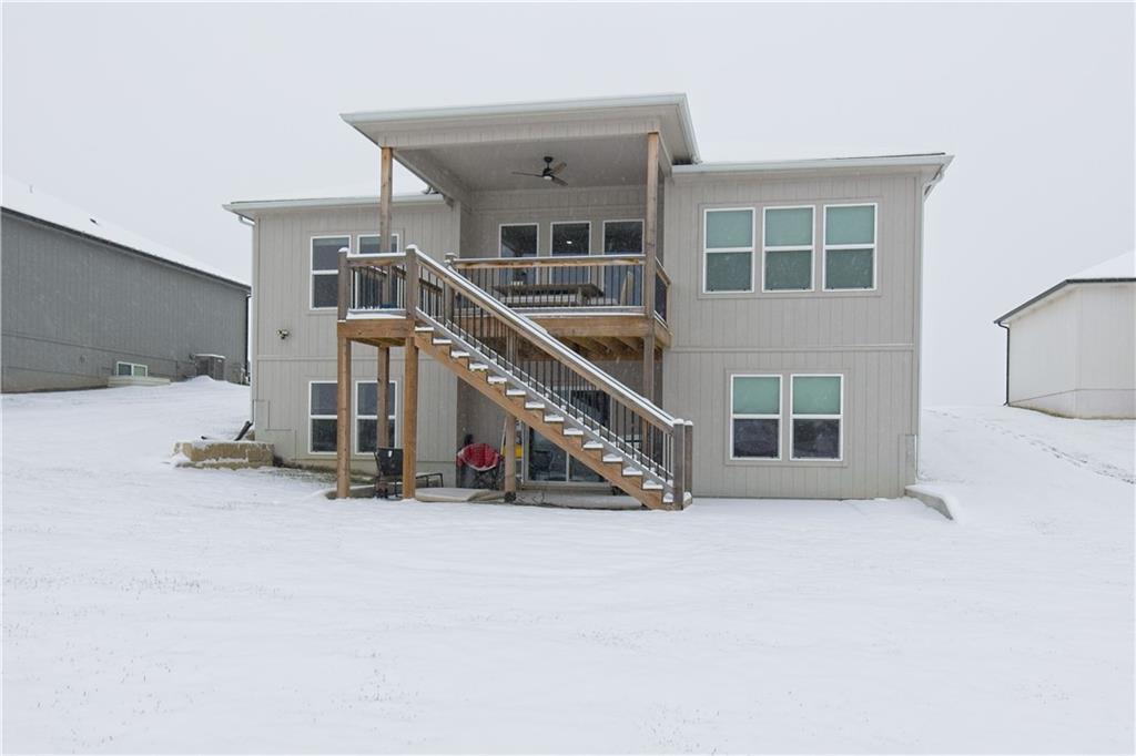 Fantastic, nearly-new reverse 1 1/2 story with 3 car garage is a "must see" property. KCMO address; Liberty schools. This contemporary style home, built in 2024, boasts an open floor plan with 4 bedrooms and 3 full baths. The master suite plus 2 bedrooms and 2nd bath are located on the main level; and a large rec room, 4th bedroom and 3rd bathroom are on the finished lower level with walkout (rare for this neighborhood). The kitchen features upgraded stainless steel appliances, granite countertops and walk-in pantry. Beautiful wood flooring throughout the main living area along with a gorgeous fireplace. The covered deck offers a great place to enjoy the view plus there's a covered lower level patio, ideal for grilling or chilling. The unfinished portion of the lower level provides abundant storage space and could easily be updated to add a 5th conforming bedroom. HOA recently moved from developer control to property owner control.