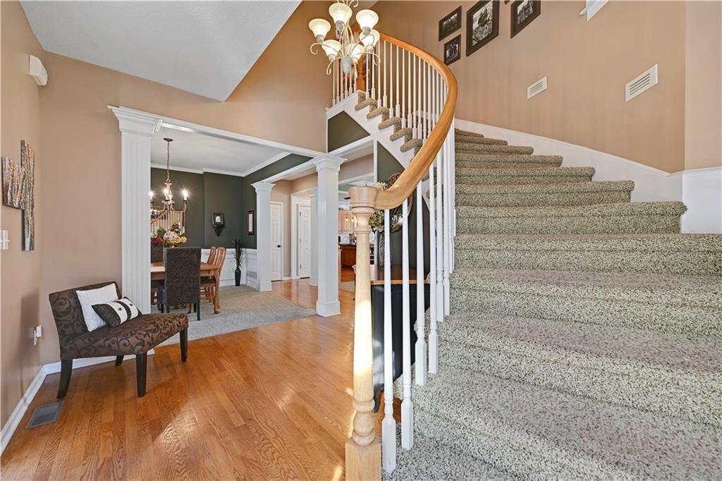 Spectacular two-story home in the coveted Park Hill School District, perfectly situated on a secluded, wooded lot offering privacy and tranquility. This 4-bedroom, 3.1-bath residence features an open-concept layout ideal for both everyday living and entertaining. The spacious great room flows seamlessly into the hearth room, while formal dining and a sunny breakfast nook provide flexible gathering spaces. The large kitchen is a chef’s dream with a center island, granite countertops, abundant cabinetry, and ample workspace. Upstairs, retreat to the impressive primary suite overlooking the private, wooded backyard. This luxurious sanctuary includes a sitting room, fireplace, built-ins, vaulted ceiling, and a spa-like bath with dual vanities, soaking tub, walk-in shower, and generous his-and-hers walk-in closets. A convenient laundry chute leads directly to the laundry room. The daylight lower level offers a comfortable family room with plenty of natural light, perfect for relaxing or entertaining. Enjoy peaceful surroundings with unbeatable access to the highway system and airport—this home truly combines privacy, space, and convenience.