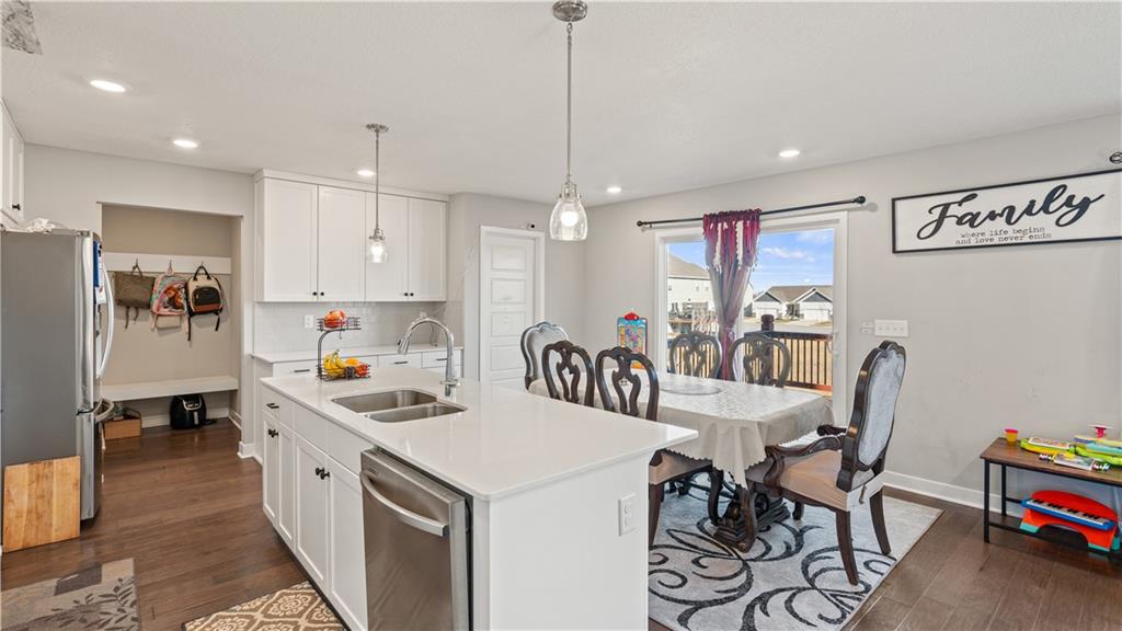 Welcome to this beautifully maintained 4-bedroom, 2.5-bath single-family home built in 2022, offering 1,858 square feet of thoughtfully designed living space. Blending modern style with everyday comfort, this newer construction home delivers the perfect balance of functionality and community living. The main level showcases an open-concept layout ideal for both daily living and entertaining. A spacious kitchen anchors the home, seamlessly connecting to the dining and living areas. Large windows invite abundant natural light, creating a bright and welcoming atmosphere throughout. Upstairs, you’ll find four generously sized bedrooms, including a private primary suite complete with an en-suite bath and ample closet space. Whether you need room for family, guests, or a home office, this layout offers flexibility to suit your lifestyle. The unfinished walkout basement provides exceptional potential for future expansion—offering the opportunity to create additional living space, a home gym, media room, or guest suite, all with convenient access to the backyard. Step outside to enjoy the deck and fully fenced yard, ideal for relaxing evenings, pets, or weekend gatherings. Situated in a desirable HOA-managed community, residents enjoy access to amenities including a pool, playground, and clubhouse—adding both convenience and a vibrant neighborhood feel. The home is also located within a highly regarded school district, making it an excellent choice for those seeking strong educational opportunities. Move-in ready and filled with opportunity, this home offers modern construction, adaptable space, outstanding community amenities, and the added benefit of a sought-after school district.