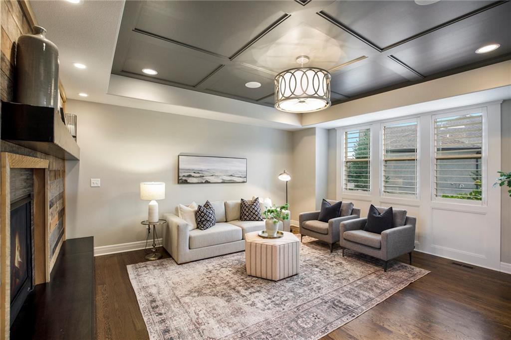 Experience luxury living in WatersEdge, one of Overland Park’s premier communities known for its serene waterscapes, resort-style pool, and clubhouse — all located within the award-winning Blue Valley School District. This stunning Bailey two-story by Roeser Homes offers approximately 3,300 square feet of thoughtfully designed space, featuring four bedrooms and three and a half bathrooms. A pair of elegant double front doors welcome you into a warm and inviting interior that includes a formal dining room, a home office with custom built-ins, and rich hardwood floors throughout the main level. The soaring two-story hearth room showcases a dramatic stone fireplace, while a separate great room offers an additional fireplace, creating multiple cozy gathering spaces. The gourmet kitchen is beautifully appointed with stainless steel appliances, double ovens, a center island, and a custom bar complete with a wine cooler and wine rack. Upstairs, a split staircase leads to the luxurious primary suite, which includes a private sitting area with fireplace, a spa-like bathroom with an oversized shower, jetted tub, and dual vanities, and an expansive walk-in closet with convenient access to the laundry room. Three secondary bedrooms offer spacious walk-in closets, vaulted ceilings and one has an ensuite bath while the other two share a Jack and Jill bath. Outdoor living is just as impressive featuring a covered patio with a fireplace—perfect for entertaining or quiet evenings at home. Additional features include additional outlets built-in ProSlat wall hanging system in the three car oversized garage, an unfinished basement stubbed for a bath and a wet bar, and a mirrored wall for a workout space. Enjoy new fresh interior paint and numerous high-end upgrades including extensive elegant millwork around all windows, a Sonos audio system with ceiling speakers, plantation shutters, a security system and a sprinkler system. This home is a true reflection of pride in ownership.
