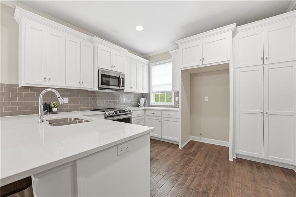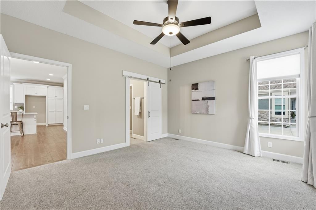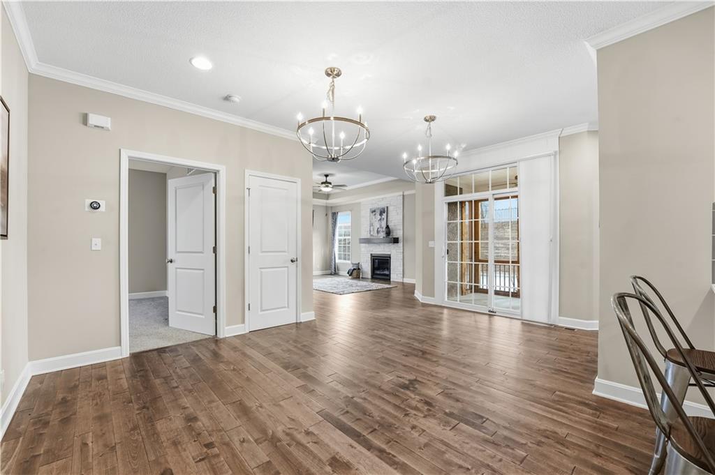 Discover a highly sought-after gated community right in the heart of South Kansas City! This stunning Lambie twin villa has three bedrooms and three full baths. The open concept floor plan invites you into the cozy great room, complete with a beautiful stone fireplace, custom window treatments and ceiling fan. The home showcases hardwood floors throughout the main living areas, tile floors in the bathrooms and laundry, plus solid surface countertops in baths. The elegant chef's kitchen is equipped with quartz countertops, a custom backsplash, a pantry with roll-out shelves, and new stainless steel appliances. The impressive primary suite boasts a large shower, double vanity, and walk-in closet. A sunny dining room opens to a screened-in porch, ideal for savoring your morning coffee. The finished basement, completed just two years ago, includes a recreation room, third bedroom, third full bath, and ample storage space. No detail has been overlooked in this picture-perfect home!
