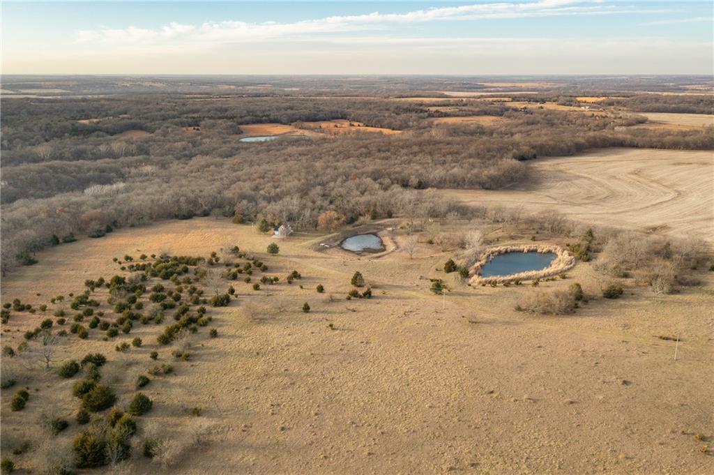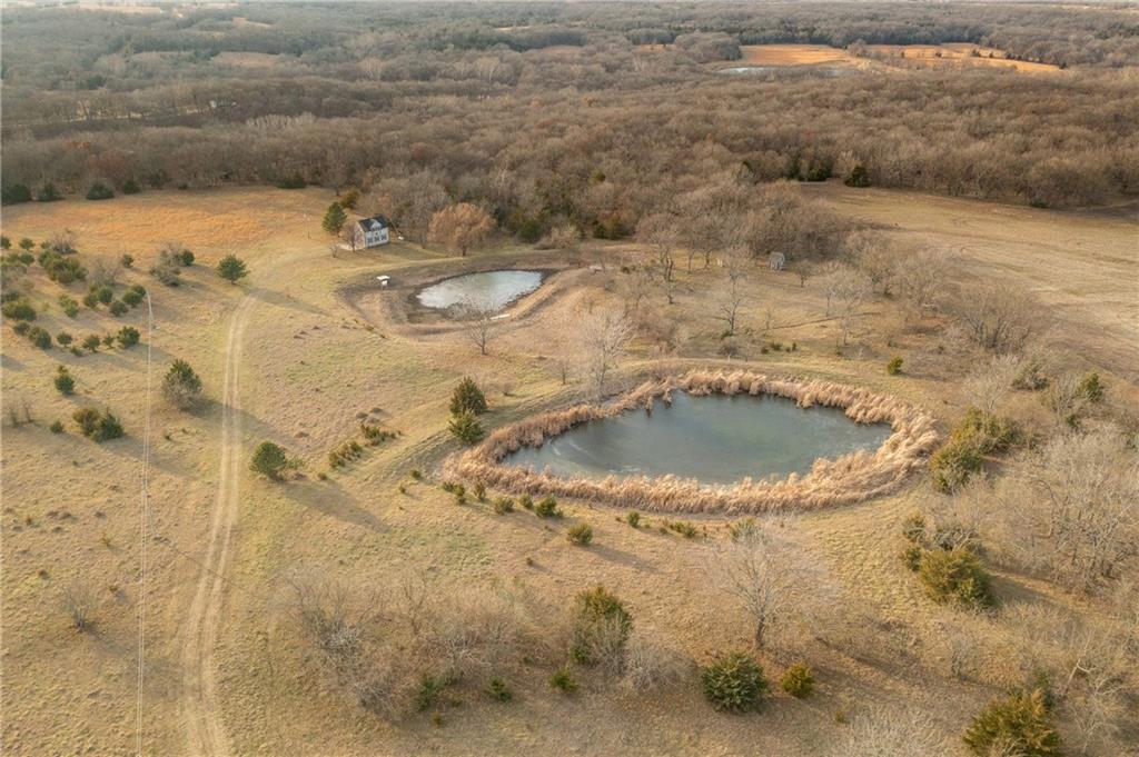 Located just south of Pomona, KS in Franklin County, this 40± acre tract offers rolling pasture, quality wildlife habitat, and a well-maintained carriage house. The property has been grazed in recent years and features two primary ponds that could be combined into a larger pond with minimal work, plus an additional wet-weather cattle pond on the south end. Timber is well positioned with a 3–4 acre block in the northwest corner behind the carriage house, complete with a draw leading into the pond system. This area has produced trail-camera photos of mature whitetail bucks and turkeys. A second 5+ acre block of mixed hardwoods and cedars sits on the southern portion of the farm and offers excellent bedding, roosting, and habitat potential. Scattered cedars throughout the pasture provide additional cover. The southwest-facing timber is ideal for TSI and habitat improvement. A 1,360 sq ft carriage house adds immediate utility, featuring approximately 710 sq ft of garage/shop space on the lower level and 650 sq ft of finished living space upstairs. A new roof was installed in Fall 2025, along with siding and door frame repairs. The living space includes an AC floor unit, propane stove for heat, a working security system, and a rudimentary toilet with plumbing ready to be completed. A water pump system allows water use in the structure. Electricity is on site with a meter installed, along with a 500-gallon propane tank. Furniture, beds, mini fridge, microwave, AC unit, propane stove, drinking water system, riding mower, shop supplies, and building materials all convey with the sale. Conveniently located just off I-35, approximately one hour from Overland Park, 10 miles from Ottawa, and a short drive to Pomona Lake and Melvern Lake. Ideal for grazing, a weekend retreat, or developing into a strong recreational and hunting property.