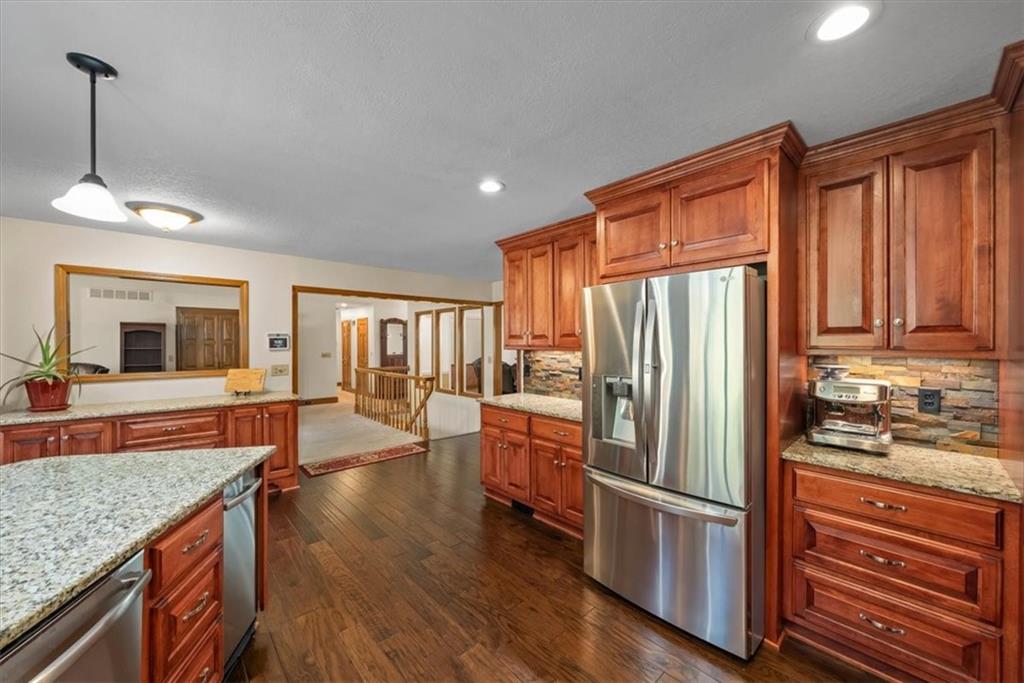 Tucked away at the end of a peaceful cul-de-sac near Lake Lotawana, this exceptional 4-bedroom, 5-bath home offers privacy, space, and thoughtful design with over 4000 finished sqft on over 2 acres. A true retreat, the property features a serene back deck overlooking the expansive acreage—perfect for morning coffee, entertaining, or simply enjoying the quiet setting. Inside, you’ll find a flexible layout with a bonus office ideal for working from home. The primary wing is a standout, featuring dual bathrooms, two walk-in closets, and a private laundry room for ultimate convenience. Car enthusiasts and hobbyists will love the five-car garage setup, including three front-facing garages and two additional garages tucked behind the home—perfect for storage, recreational vehicles, or workshop space. Located on a quiet street in a highly desirable Lake Lotawana area of Lee’s Summit, this home blends luxury, function, and peaceful country living just minutes from city amenities.
