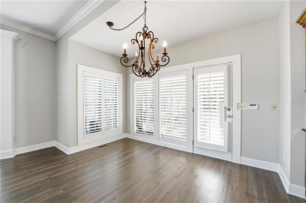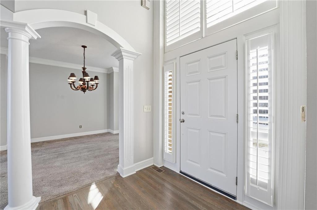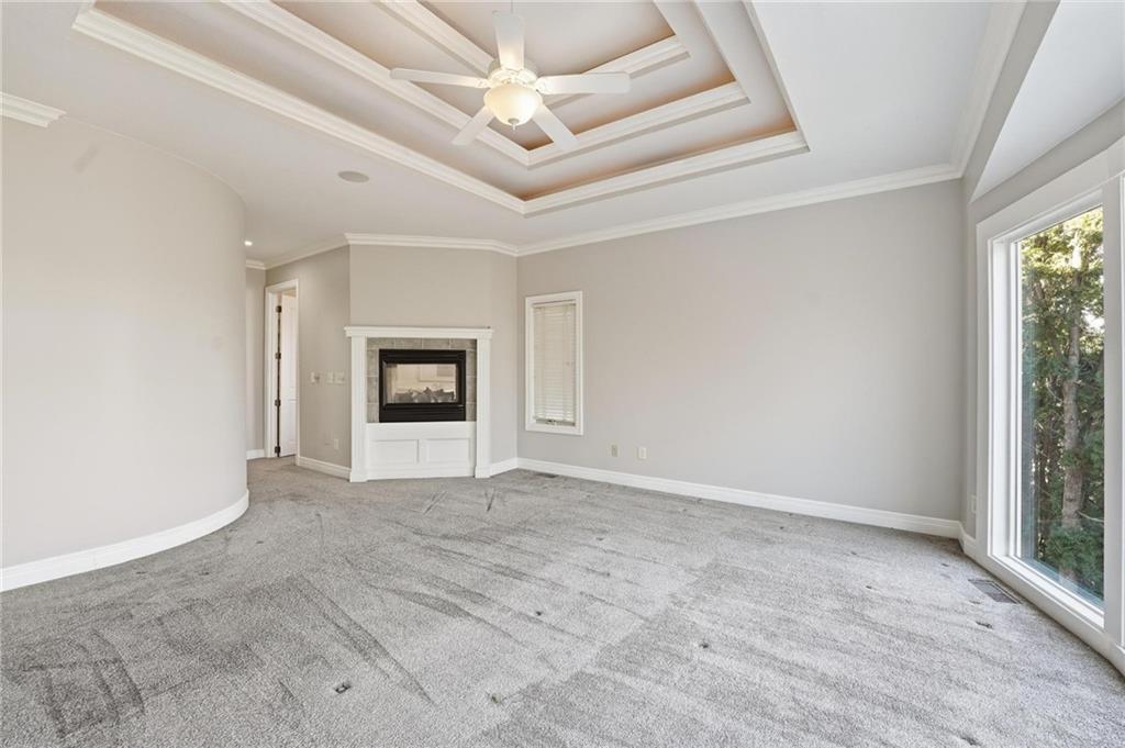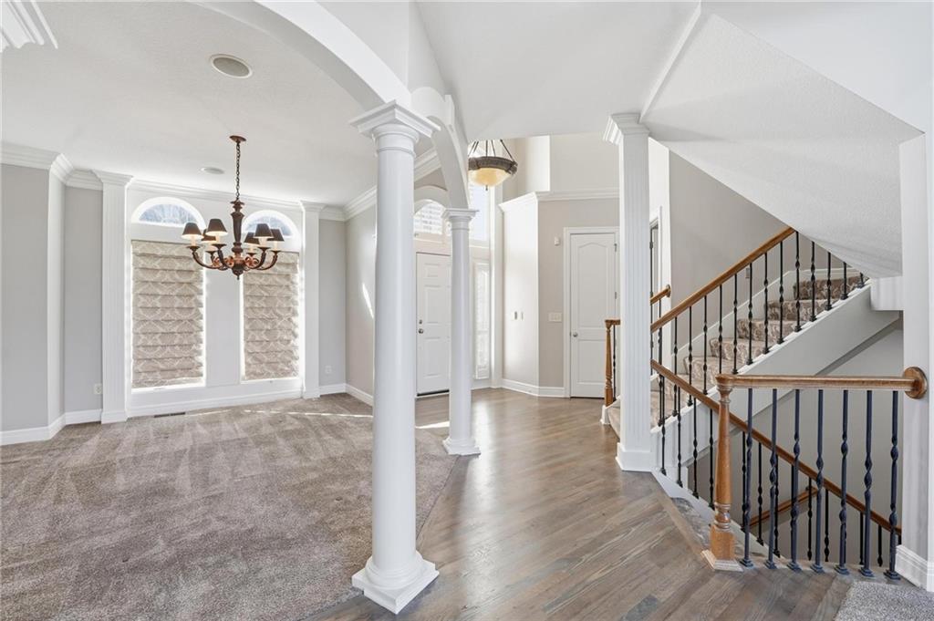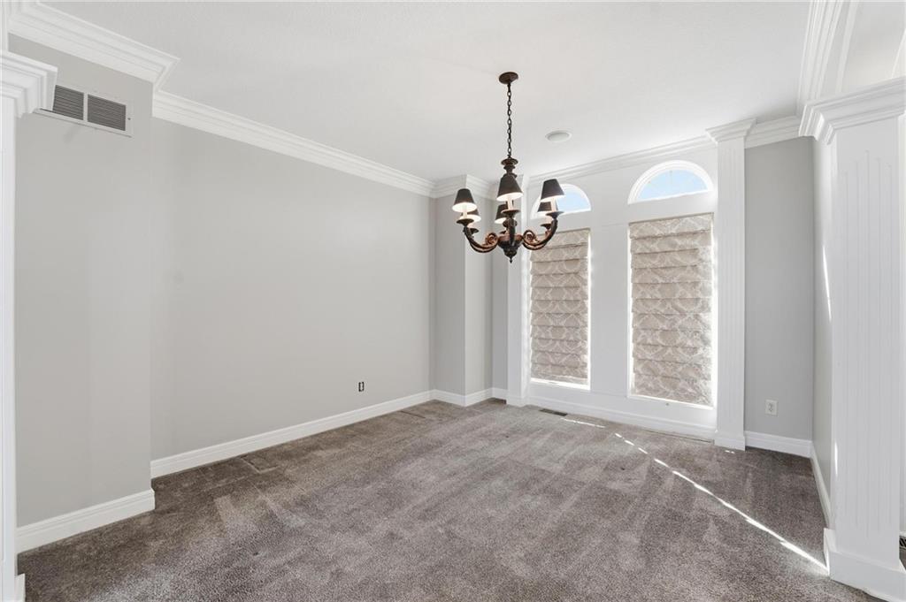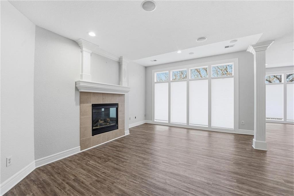 Outstanding 1.5-story home with an exceptional floor plan and upgrades throughout. The dramatic two-story great room features floor-to-ceiling windows, a stunning fireplace, abundant natural light, and plantation shutters. A large formal dining room is perfect for entertaining. The gorgeous kitchen and hearth room combination offers granite countertops, JennAir appliances, beautiful wood floors, a large gas cooktop, and double ovens, ideal for cooking and hosting. The breakfast area just off the kitchen opens to a deck, creating a seamless indoor-outdoor flow. The cozy hearth room features a three-sided fireplace and built-in entertainment center. The main-floor primary suite is a true retreat with a floor-to-ceiling bay window and a luxurious spa-like bath featuring a see-through fireplace. The finished walkout lower level expands the living space with an exercise room, a spacious recreation room, a third fireplace, and a second kitchen, ideal for guests or extended stays. Step outside to a large stone patio that extends across the back of the home, surrounded by beautifully landscaped grounds. The fenced backyard offers privacy and space to relax, play, or entertain. A spacious three-car garage adds convenience and ample storage.