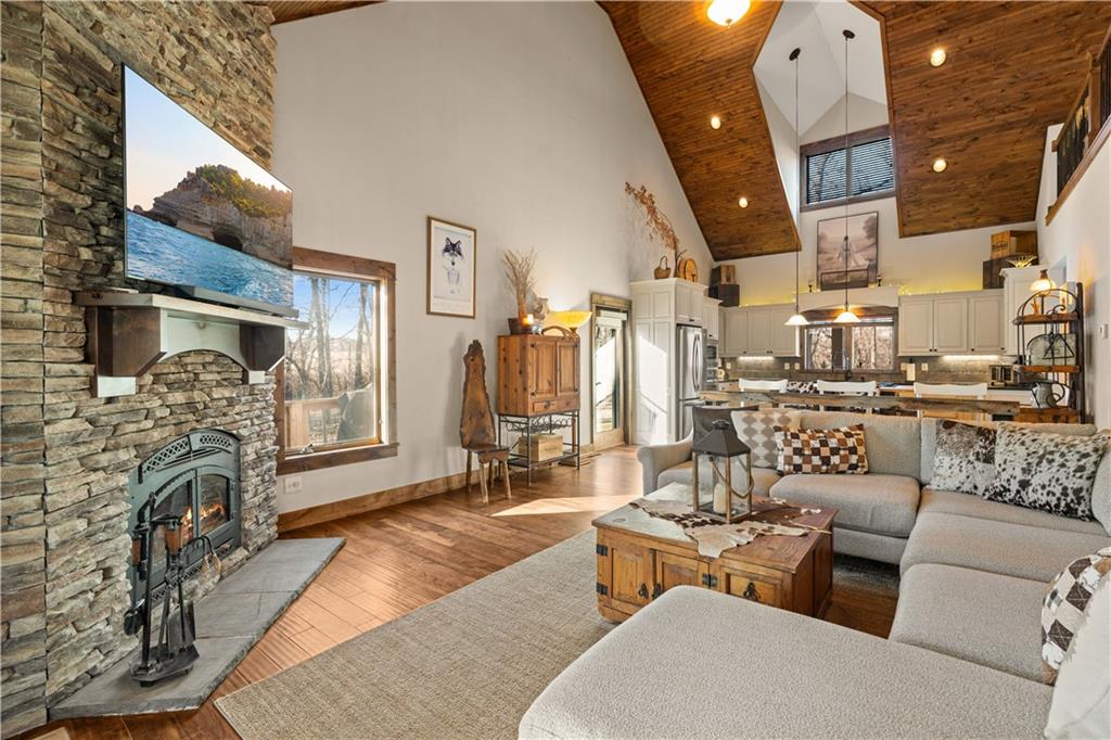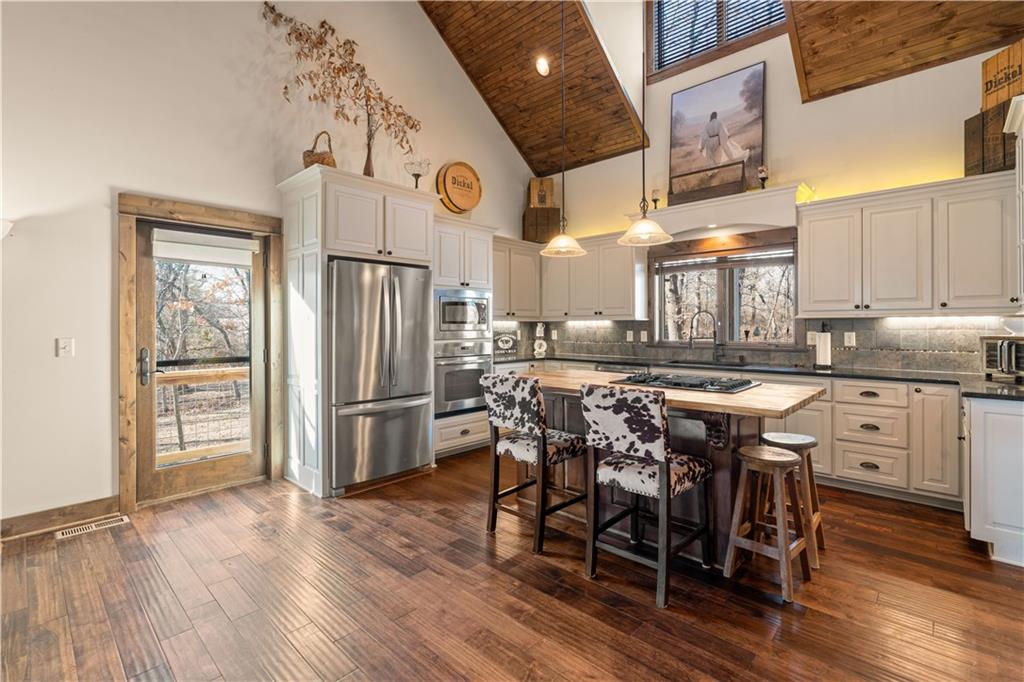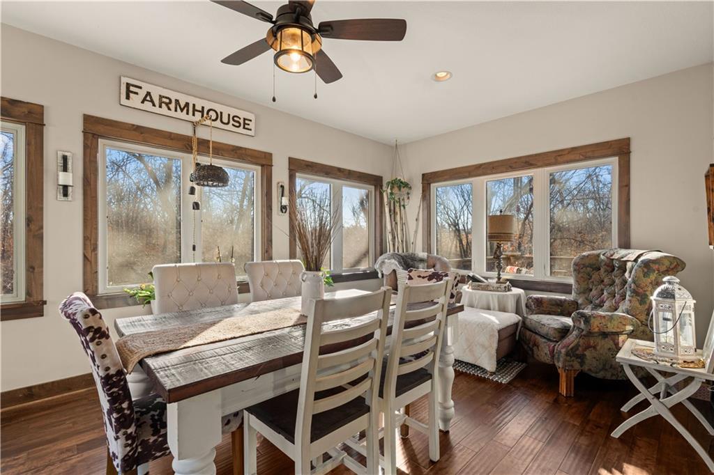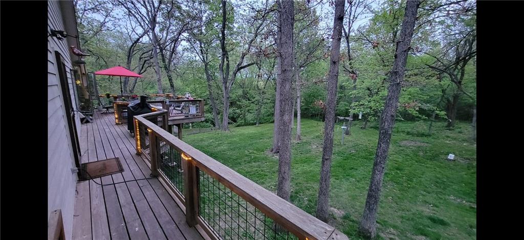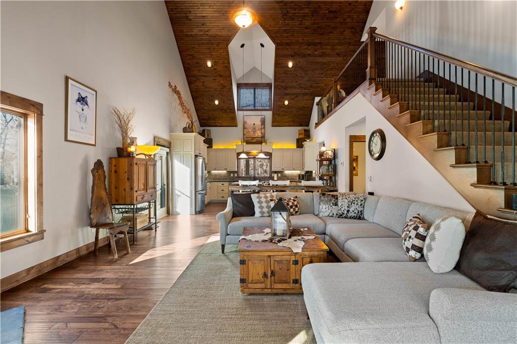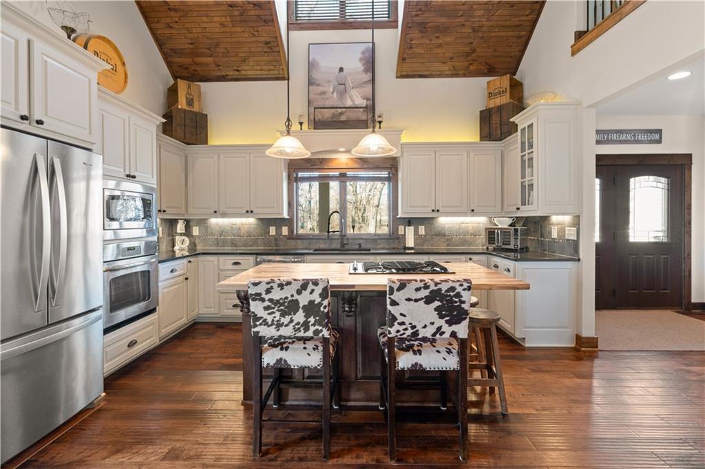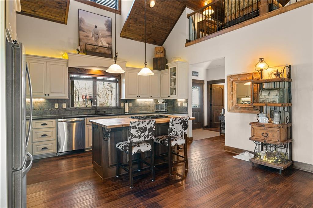 A true slice of paradise awaits with this custom-built 3-bedroom, 2.5-bath home set on nearly 10 acres of peaceful countryside. Surrounded by mature timber, open pasture, 1/4 acre pond, and extensive walking and riding trails, this property offers privacy, beauty, and functionality. A nearly 500 yard long driveway leads you to your own private retreat and an impressive 30x48 shop, fully insulated with closed-cell spray foam, featuring concrete floors, its own electric meter, 100-amp service, and two 8x10 garage doors with automatic openers. A brand-new Class 4 high-impact roof was installed in June 2025 and includes a 25-year warranty. Inside, the open-concept layout showcases vaulted wood ceilings and a striking floor-to-ceiling stone, wood-burning fireplace, creating a warm and inviting great room that anchors the home. Custom cabinetry, walnut-stained alder ceilings, birch hardwood flooring, alder trim, and custom doors highlight the craftsmanship throughout. The kitchen is appointed with granite countertops, stainless steel appliances, a gas cooktop, walk-in pantry, and ample storage. Outdoor living is enhanced by an 18x16 deck with illuminated railing, grill bump-out, and extended walkway—perfect for entertaining or enjoying the serene surroundings. Additional highlights include a Marathon Rheem 50-gallon water heater with lifetime tank warranty, water softener, whole-house water filtration system, GEO Thermal ground source heat pump, Andersen windows, and durable 2x6 exterior walls. A fenced backyard with doghouse and direct access to the home adds convenience, while the unfinished walk-out basement offers endless potential for future living space, workshop, or recreation area. Completing the beauty of this retreat-style home, this exceptional property blends craftsmanship, energy efficiency, and natural surroundings for refined country living at its finest.
