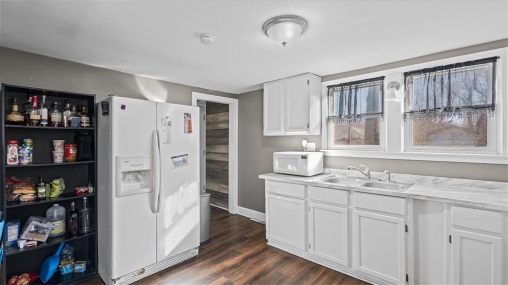 Charming and versatile home offering 2 bedrooms, 1 non-conforming room, and 1 full bathroom, plus a basement providing additional storage or usable space. The interior features updated flooring, neutral paint, and a functional layout that flows comfortably from room to room. The kitchen has ample counter space, and connects seamlessly to the main living area, making everyday living easy. The living room features a cozy fireplace with an accent wall, adding warmth and character to the space. Two main-level bedrooms offer comfortable living space, while the non-conforming room provides flexibility for a home office, hobby room, or guest space. The bathroom includes updated finishes and a tile surround. Outside, the property offers a detached outbuilding/garage ideal for storage or workshop use, along with a manageable yard ready for your personal touch. This home offers comfortable living with flexible space to fit a variety of needs.