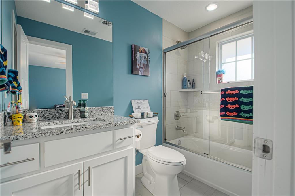 Like New 2-story—full of upgrades throughout. With excellent curb appeal and a fully fenced backyard, this home truly checks all the boxes. Step inside to an inviting, open main floor designed for easy family living and effortless entertaining. The kitchen, breakfast area, and living room flow together seamlessly, featuring a large center island, gas range, gorgeous granite/quartz counters, and an enormous pantry—perfect for the home chef. You’ll also love the versatility of the main-floor 5th bedroom, which can double as a home office or formal dining space. Upstairs, the spacious primary suite offers a spa-like bathroom and an oversized walk-in closet you’ll have to see to believe. Secondary bedrooms are generously sized with great natural light. Located just moments from Nike Elementary and with quick access to I-35, you get convenience and a peaceful country feel. Tuscan Farm also includes upgraded standard features like front and side yard sprinklers, beautiful stone counters in all baths, and modern finishes throughout. Don’t miss your chance to own a like-new home in an incredible location—this one is truly move-in ready with appliances and window coverings already included!