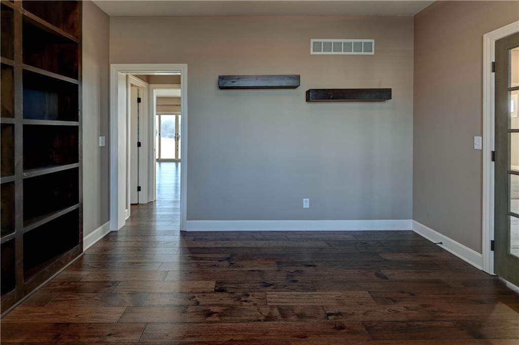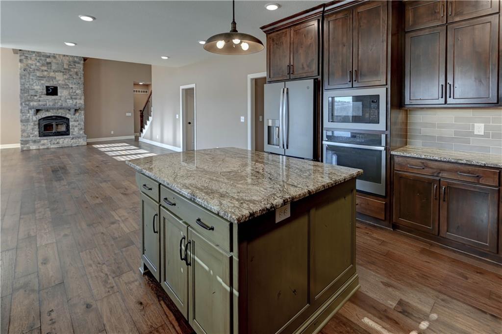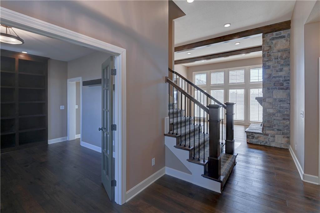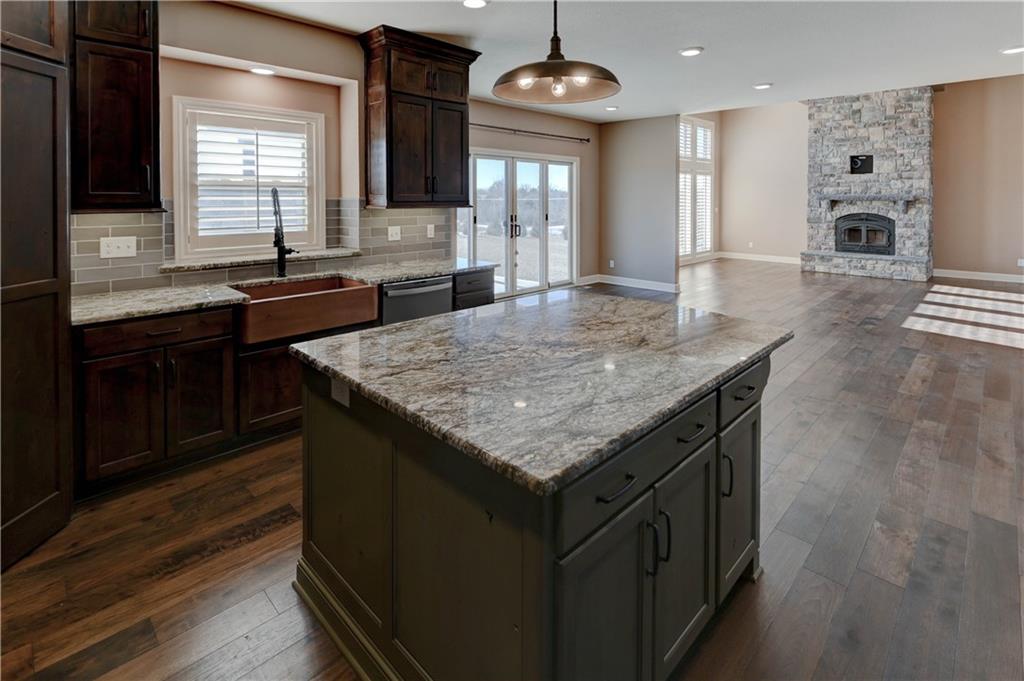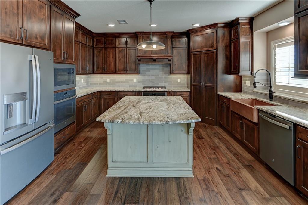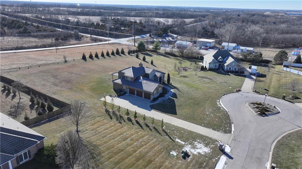 Stunning custom-built Jay Jackson home offering quality craftsmanship and timeless design on 1.5 beautifully landscaped acres. The oversized three-car garage features individual doors, larger bays, workshop space, and a wash sink. A spacious mudroom includes stone paver flooring, seating cubbies, folding area, broom closet, and laundry with cabinets. Hardwood floors flow through the kitchen, dining, and great room. The kitchen is designed for entertaining with GE Profile gas range, custom stained cabinetry, painted oversized island, granite countertops, copper farmhouse sink, and a large walk-in pantry. The dining area opens to a covered patio with ceiling fan. Plantation shutters throughout. The great room features a floor-to-ceiling stone fireplace and exposed beams. A custom half bath adds charm. The office offers wood floors, built-ins, and French doors, ideal for a flex or TV room. The entry showcases a striking light fixture, and the covered front porch is accented with stone. The main-level primary suite includes carpet, ceiling fan, exposed beams, walk-in closet, and master bath with double granite vanities and tiled shower with bench and dual shower heads. The upper level includes a large loft (possible 4th bedroom), two bedrooms with walk-in closets, and a Jack-and-Jill bath. The walk-out lower level is unfinished, plumbed for a bath, and offers excellent expansion potential. Additional highlights include a tile roof, stone and Hardy board siding, and beautiful seasonal landscaping.